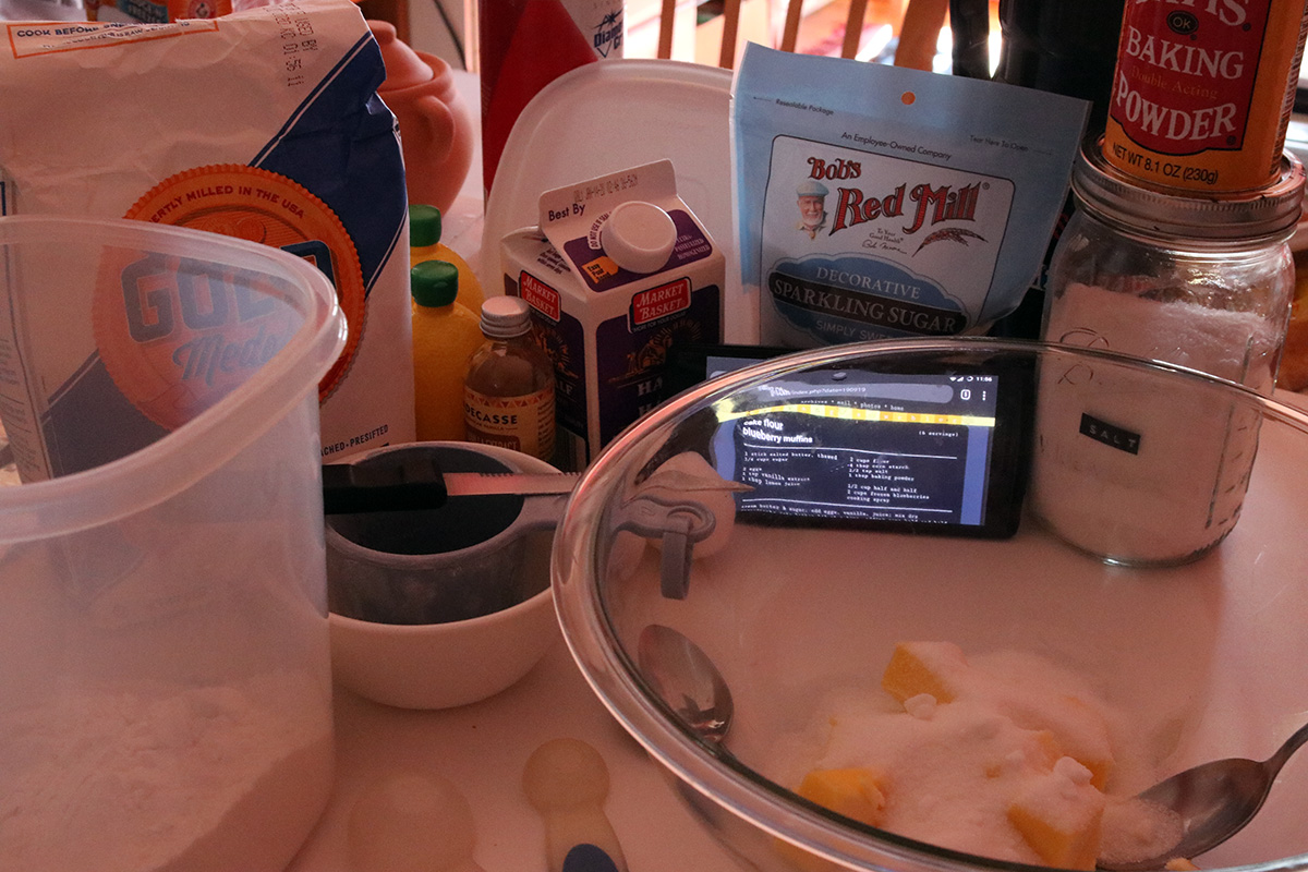 i made the muffins while watching the news on my phone. since i upgraded to unlimited data yesterday, i still haven't tried it yet because i'm mostly home and on my wifi. i look forward to the opportunity where i can be somewhere remote and watch television or do a video chat. i have never video chatted remotely, because i've never had unlimited data before. it's going to take some getting used to.