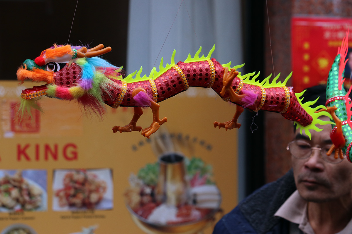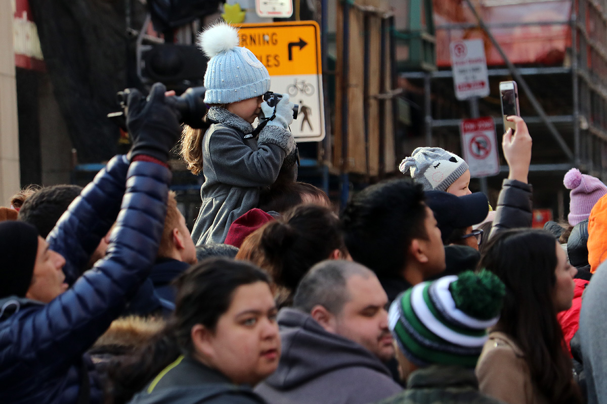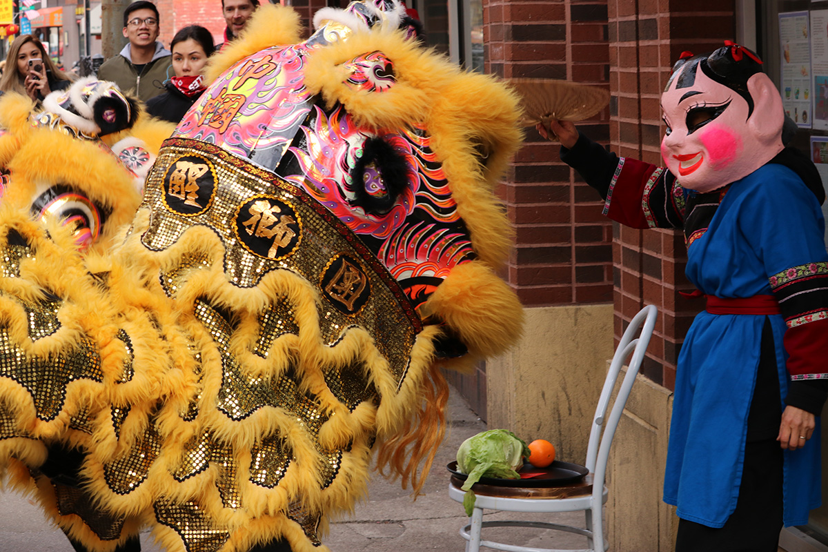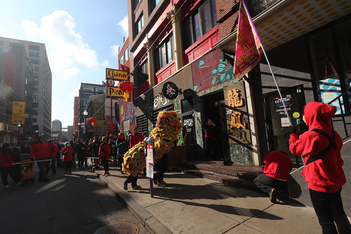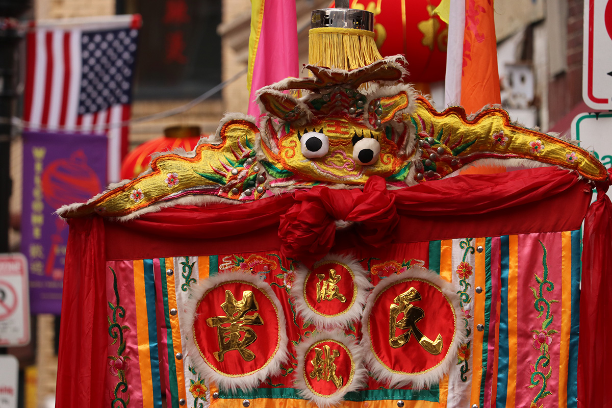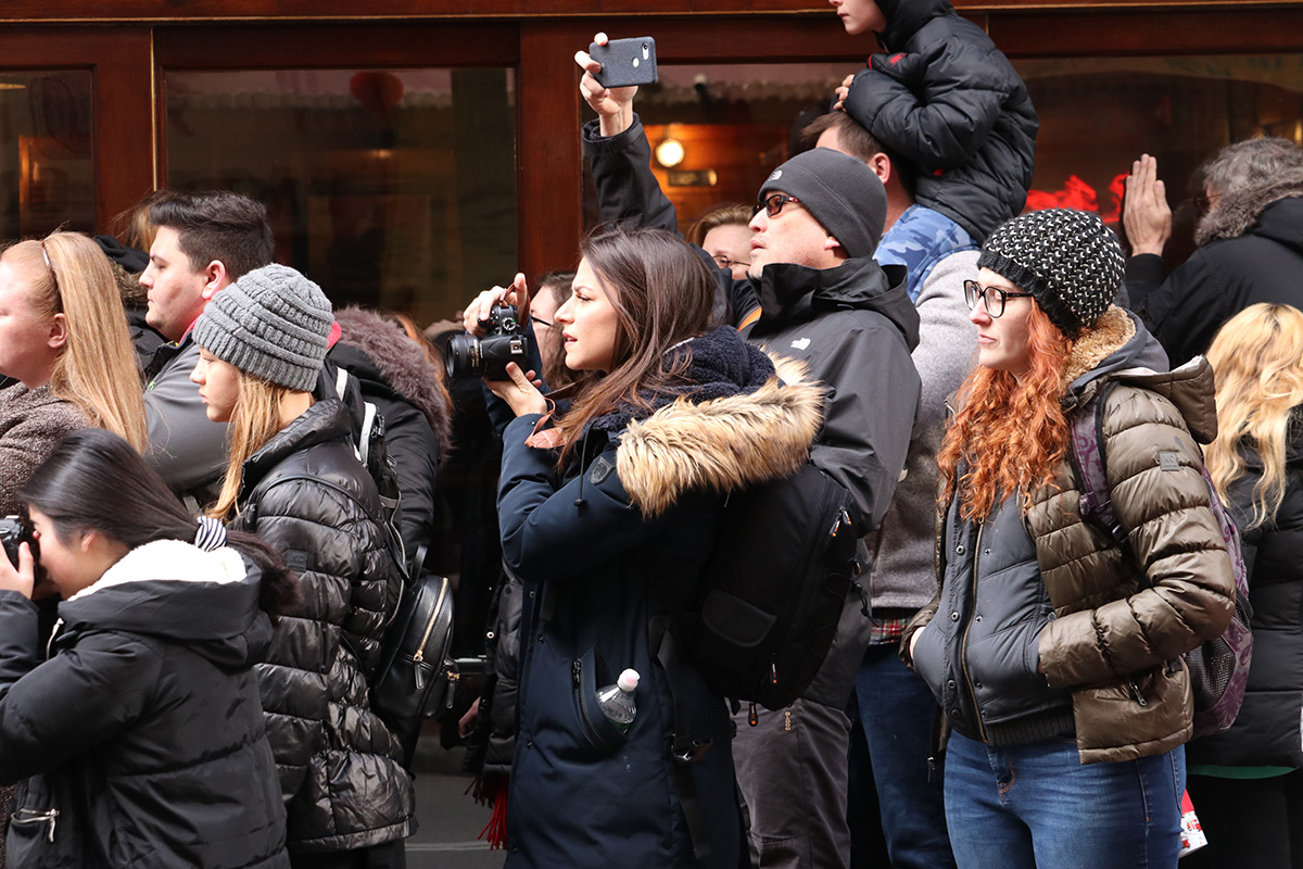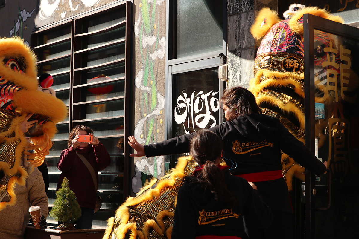 i arrived by 9:45am. i thought the ceremony had already started because i heard drumming, but it was just the different lion dance troupes practicing. the first thing i noticed after i parked my bike was how quiet and desolate chinatown had become. sure, they closed off the streets, but there didn't seem to be anyone, just a few handful of locals standing on the curb, waiting for the lion dance to begin. there was hardly any people. i was seriously beginning to think maybe the coronavirus had scared off a lot of spectators. but as we got closer to showdown, more people started showing up, both onlookers and performers. a large troupe of lion dancers marched into chinatown. i think roused by the commotion, more tourists began showing up as well. in the end, i estimate roughly the same number of people came today as there was last year.
