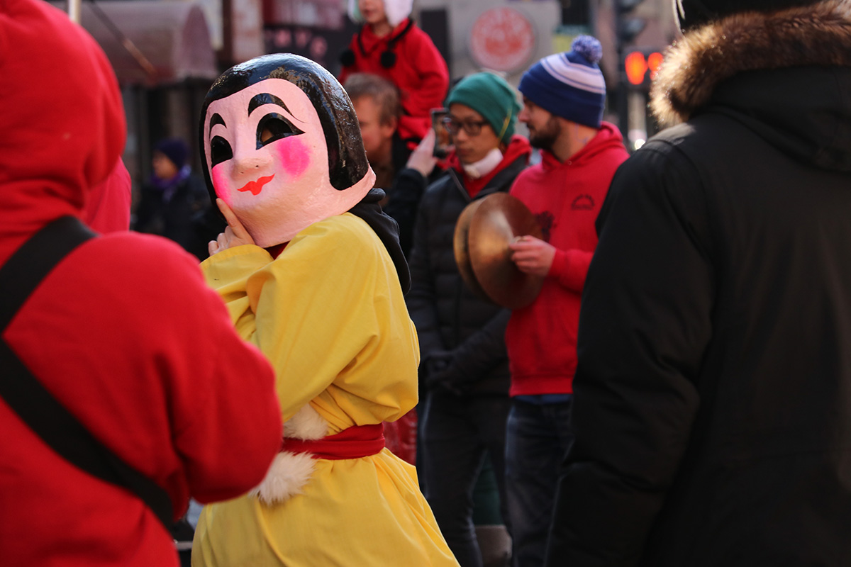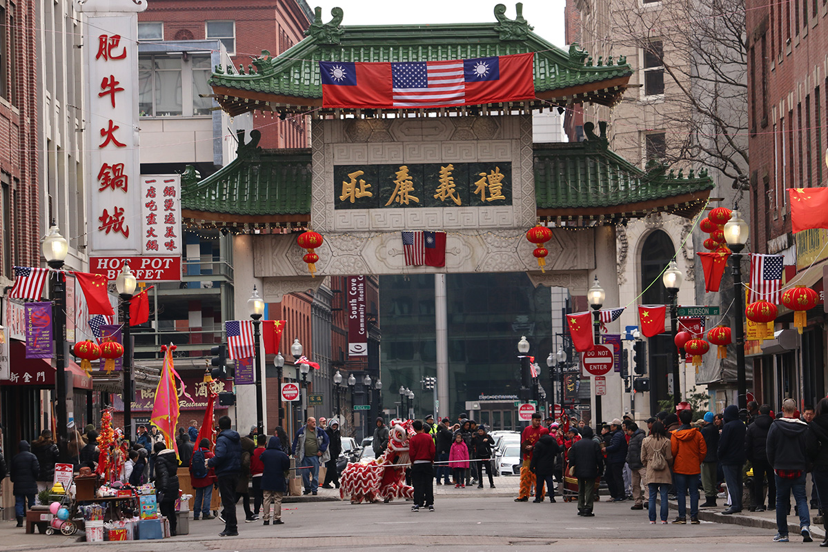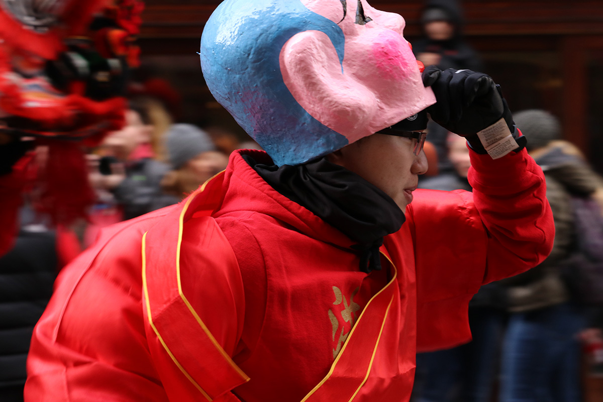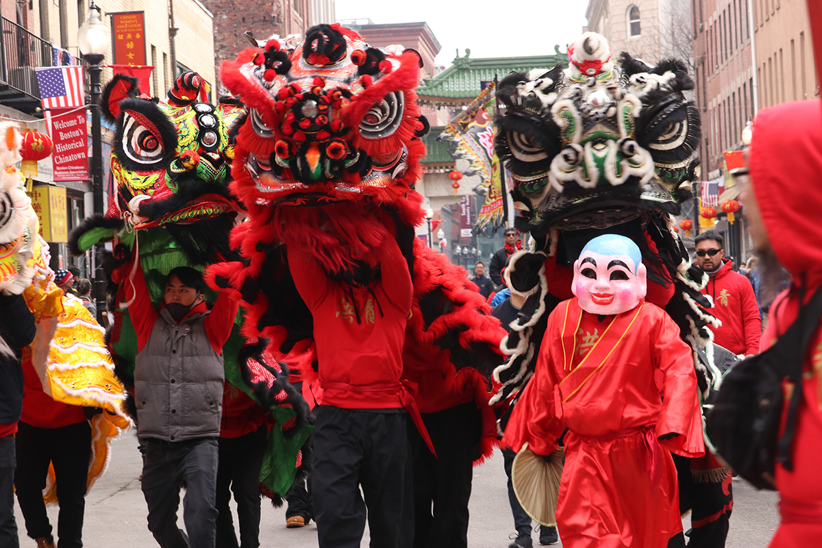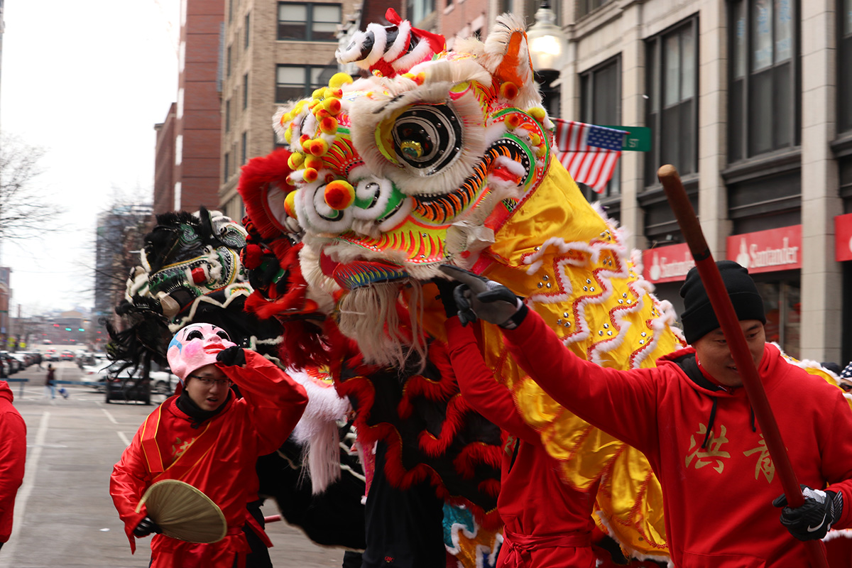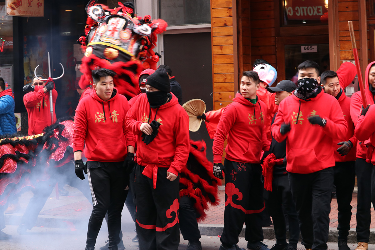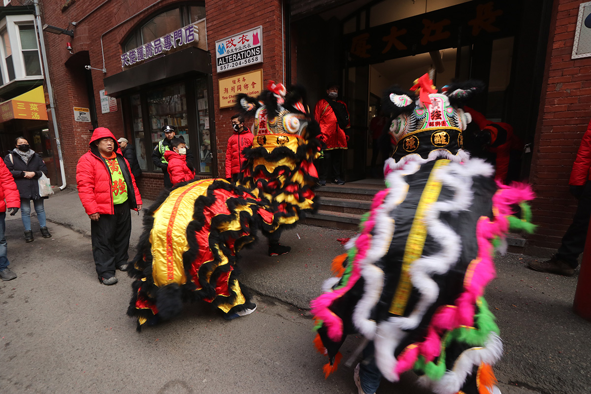 i went to bed last night at 3am. i set the alarm for 8:30am, but my synchronized mi band started vibrating at 7:30am. there's some bug with the software where it always vibrated an hour before the alarm goes off, not sure why. when my phone alarm went off an hour later, i snoozed it to 9am. the lion dance didn't start until 10am, i still had plenty of time to make it to boston. temperature was in the upper 30's but supposed to reach the lower 40's later in the day. sunday morning there wasn't a lot of traffic. there seemed to be some cambridge/somerville road race taking place, and the closer i got to kendall square, the more runners i saw arriving for the event that starts at 10am.