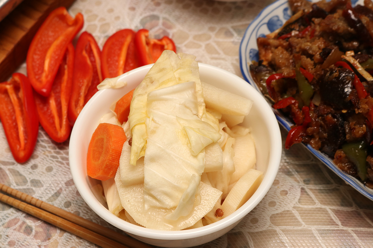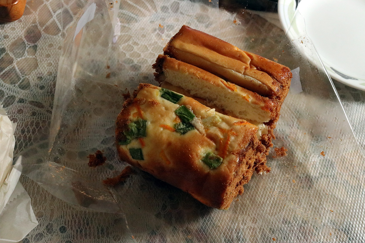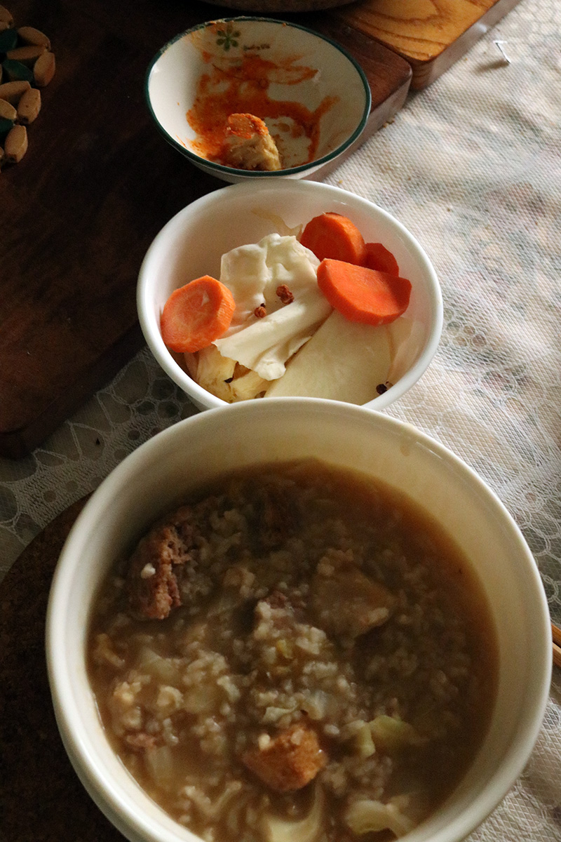 my mother fixed me a bowl of rice porridge again. she had opened up the jar of sichuan paocai which had been fermenting for over a month. it had the perfect flavor - sour, spicy, salt - my mother said it was too sour, but i finished a whole bowl of paocai with my porridge. afterwards we tried some of the pastries i brought back.