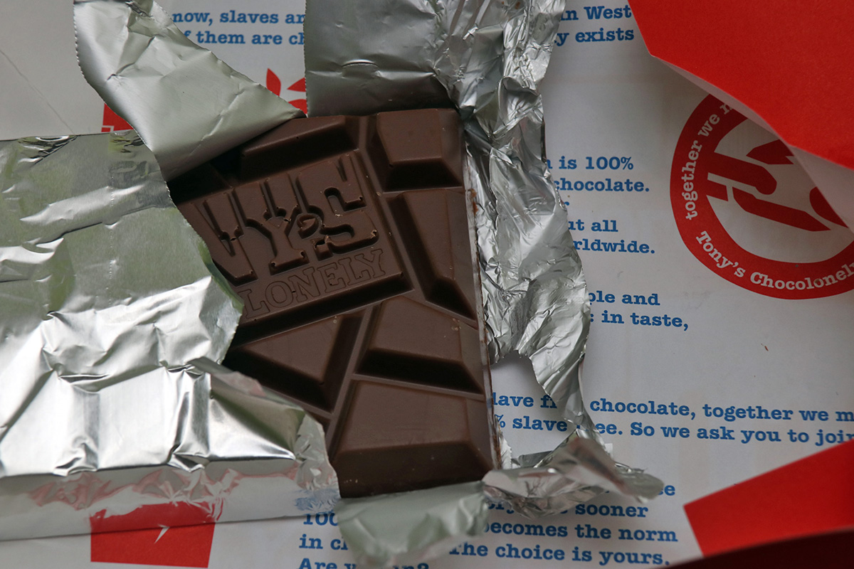 for dinner i made a egg prosciutto cheese basil pesto english muffin sandwich along with an italian dressing salad followed by a small honeycrisp apple and some rooibos tea. i also tried some of the tony's chocolonely chocolate i bought yesterday. a single thick bar costs $3.50. normally i'm not one for eating just milk chocolate alone, but these were actually pretty good, i may buy them again if i ever get a chocolate craving.