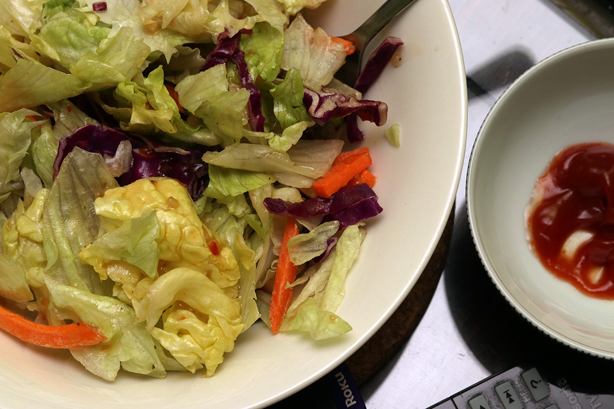 for dinner i baked some more potato wedges and ate the last of my salad, an accidental vegetarian dinner.