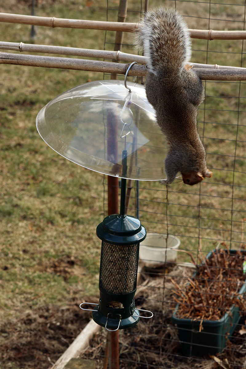 i refilled the bird feeder, even though two of the columns were still full, because larger dried berries and peanut pieces had blocked the openings again. i need to get better quality seeds instead of this mixed bag.