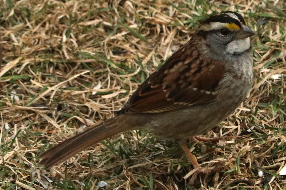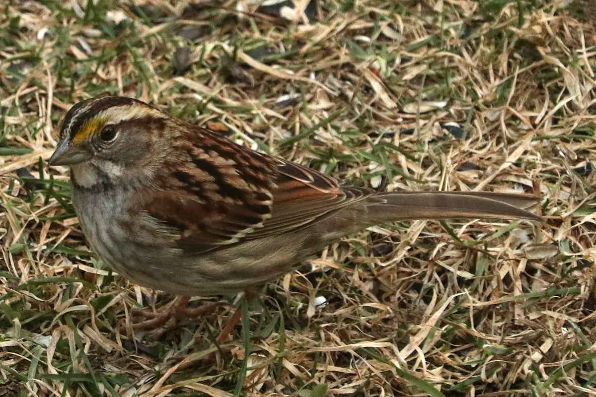 i never know this about white-throated sparrows - frequent visitors to the feeder - but they come in two forms: tan-striped and white-striped. that would explain why the first time i saw them i had a hard time with identification, because i was probably looking at tan-striped versions. equal numbers exist within the population, and the more interesting thing is that typically tan-striped will only mate with white-striped, and vice versa. behaviors are also different, with white-striped more aggressive and dominant, while tan-striped more nurturing and submissive.