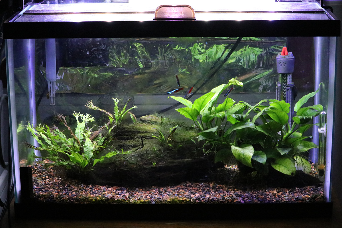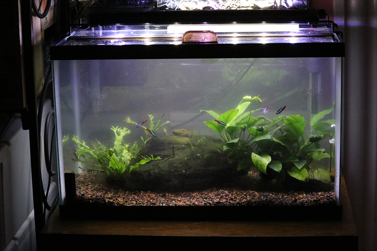 today was the first time cleaning the aquarium with a magic sponge, which i cut into quarters to make it easier to use. i was cleaning the algae off of the glass, typically the most tedious and hardest part of fish tank maintenance. in the past i used an algae scouring pad, but it took a lot of elbow grease, and even though it was near impossible to remove all the algae unless i did it batches over the course of several days. but with the magic sponge, i had the aquarium sparkling clean in matter of minutes. the next time i clean i'll need to remove the driftwood and plants, they made a more thorough cleanup in the sink, too much thread algae.