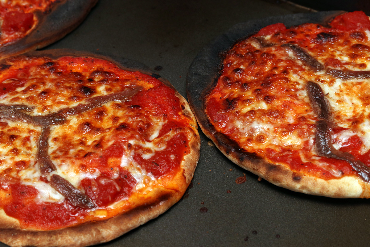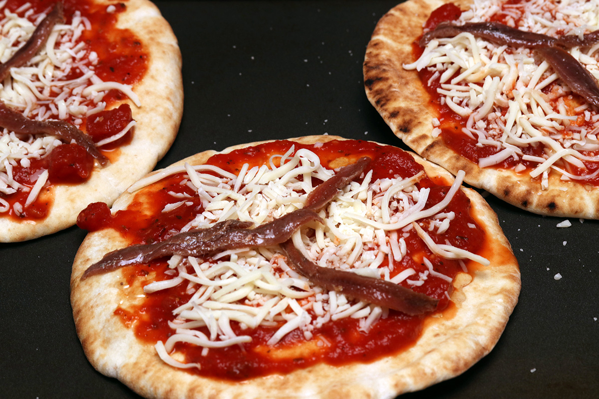 as for my own dinner, i had some really old small pita bread that i bought from haymarket that time i took kevin, so more than a month ago. i wanted to use them up before they went bad (though they were already hardened on one side where i accidentally left the bag open). last week i thought about making my own gyros, but i found a simple recipe for making oven-baked pizza using pita bread. the only other ingredients were tomato sauce and pizza cheese, both of which i had. i also opened up a can of anchovies; for somebody who doesn't like seafood very much, i love anchovies on my pizza. i made 3 small pizzas and put them in the oven on broil. they only needed to be in the oven for 2-3 minutes. the sound of the cheap cooking sheet bending from the intense heat caught my attention. when i opened the oven, the smell of burnt bread filled the kitchen, as i quickly turned off the oven. half the crusts on each pizza were charred to black, but the pizza themselves look edible otherwise. the heat seemed to have softened the pita breads, and i ate my homemade mini pizzas by folding them in half. it was actually really good, i seemed to have stumbled across a new pizza recipe (the only other pizza recipe i know of is the french bread pizza recipe and i haven't made that in ages). if i used a large pita bread and better toppings (bacon, fancy cheeses, hot pepper rings, onions), i could have a really nice pizza.