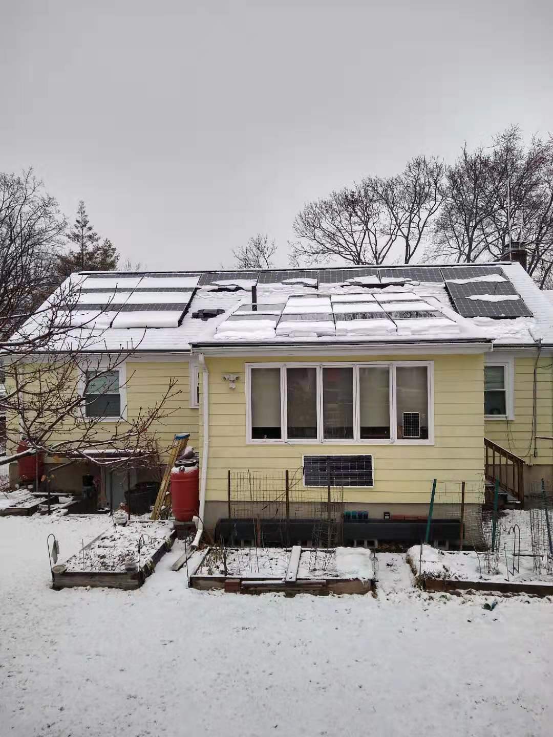 i had an english muffin sandwich for lunch. checking the solar panel production timeline, i could still see that certain panels had low production, meaning they were still partially snow-covered. once the rain started to look like it might be stopping, i left the house around 2:45pm for my parents' place to clean the panels.