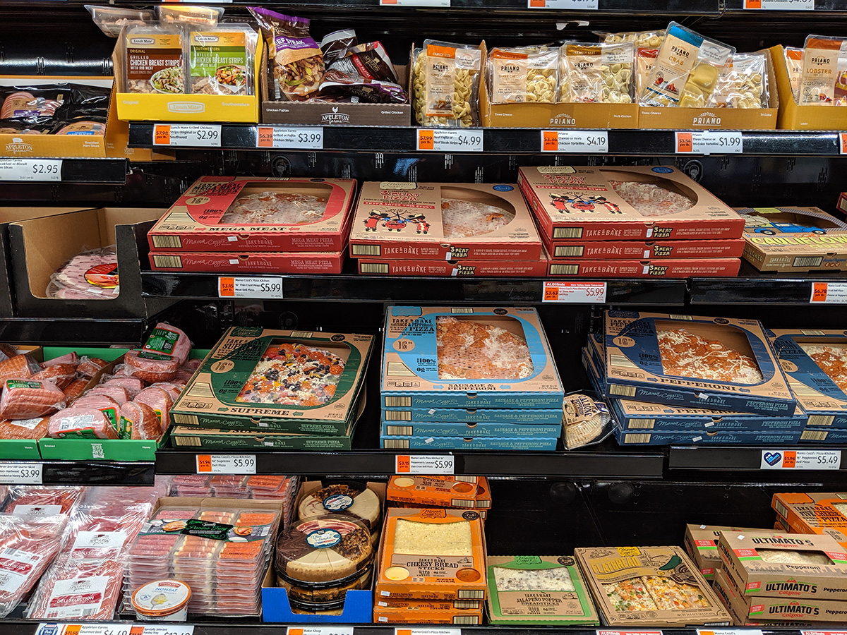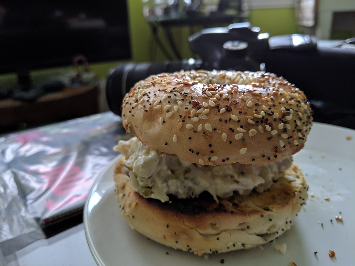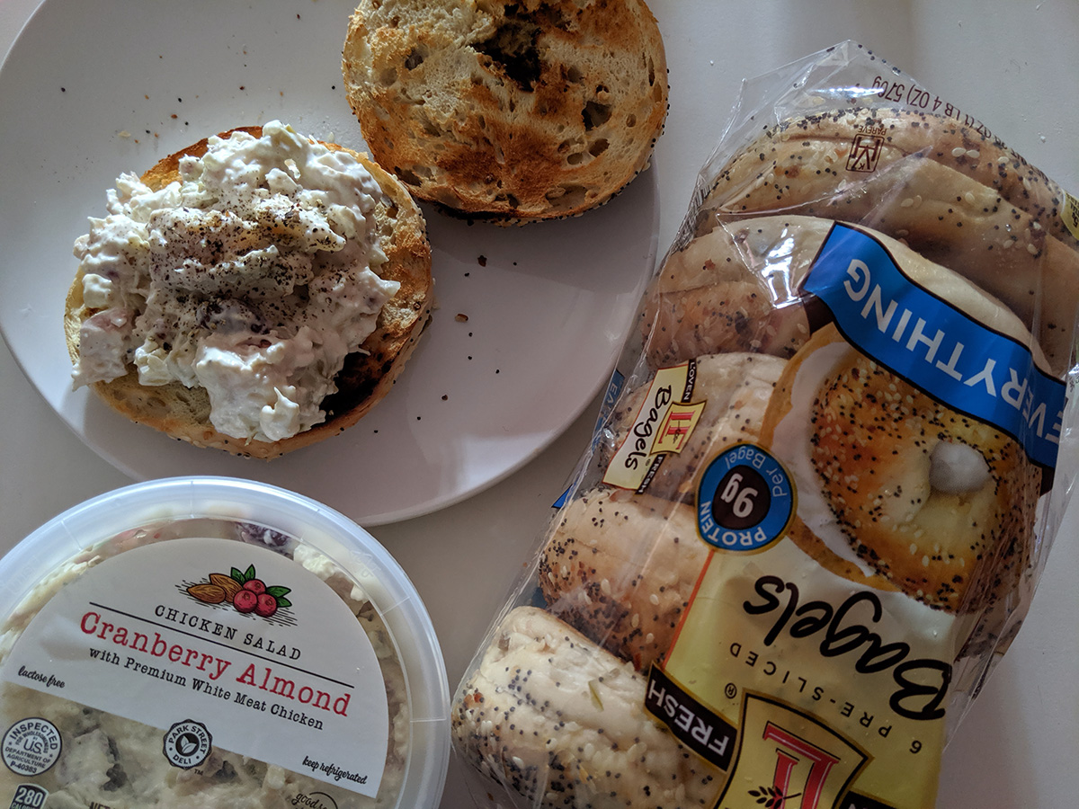 i grabbed a few things from aldi's, including a chicken salad, a package of everything bagels, and some frozen cordon bleu (those are good and super cheap).