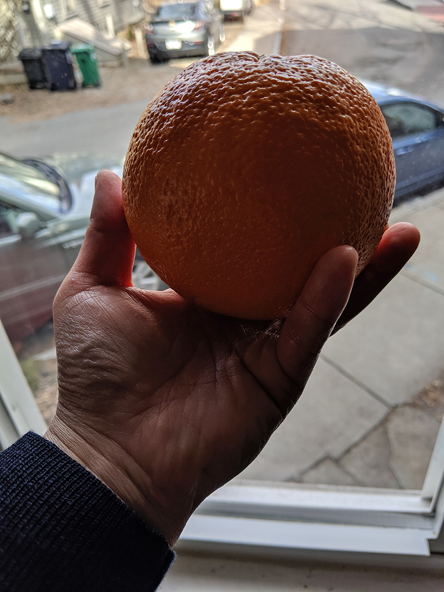 it was already 1:30pm, i didn't eat yet, so i toasted one of the bagels and spread some cranberry almond chicken salad on it. i can't even begin to describe how good it was. the savory warm bagel combined with the chicken salad, sweetness from the cranberry, crunch from the almonds. the ingredients seem simple, i bet i could make this myself (other than the bagel), and it definitely seems very healthy. i finished it off with one of the extra large oranges i bought earlier from market basket. oranges seem to get bigger and bigger, this one was grapefruit size. big oranges don't necessary mean they good, and the rind was pretty thick. i had to cut the orange into 8 slices (normally it's just 6).