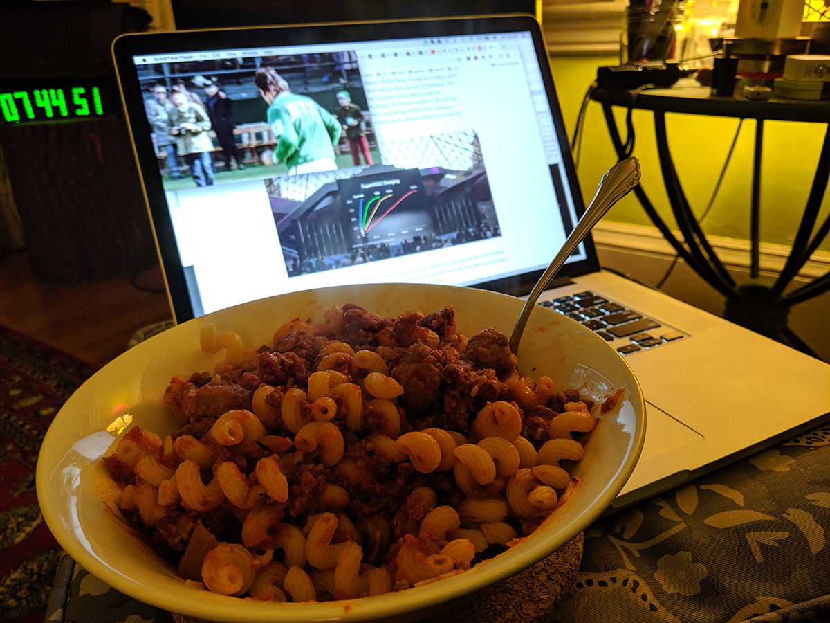 kevin left for work this morning at 9am, came back by 6pm. he didn't cook tonight, just stayed in his room for most of the evening. i reheated some pasta sauce then boiled 2 cups of cellentani noodles. i ate while watching a joe namath documentary.