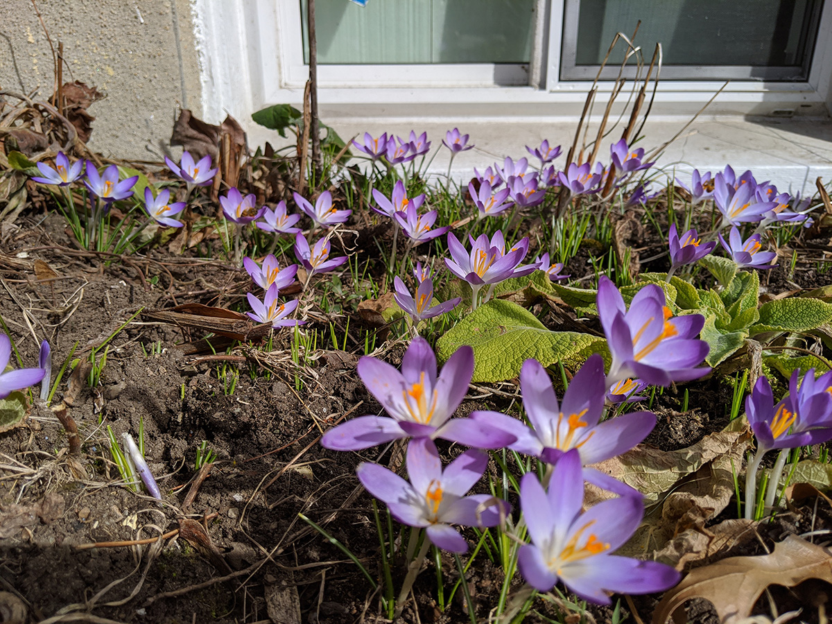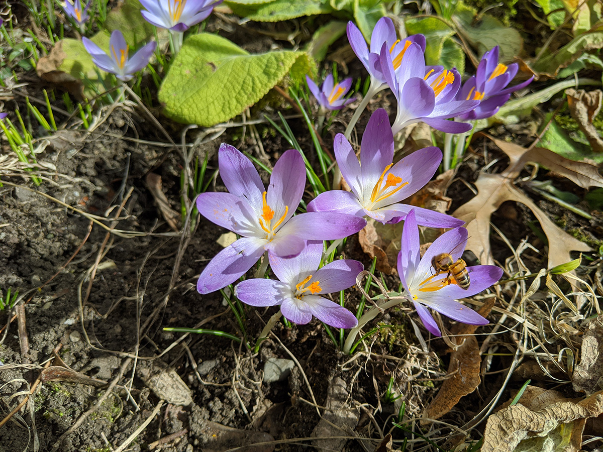 while coming back, i heard somebody call my name on linnaean street. i turned around to see a man walking but i didn't recognize him until a bit later: it was bruce! i've seen jack walking around the neighborhood all the time, it was my first time seeing bruce. i decided to walk back my bike with him as we chatted. like me, he also noticed some early season flowers, including crocuses and periwinkles. he also saw honeybees on the crocuses. being today was super tuesday, we naturally talked about the election. i learned he voted for warren, because he wanted a progressive candidate, but couldn't stand sanders. he said as a boy of 10 he met biden while he was running for the senate, and more recently just last year he saw biden at a funeral. it was a little surreal, talking about which candidates we like or dislike, all the while walking by elizabeth warren's house. a car was parked in the driveway, a young woman was sitting inside face buried in a phone, looked like an aide.