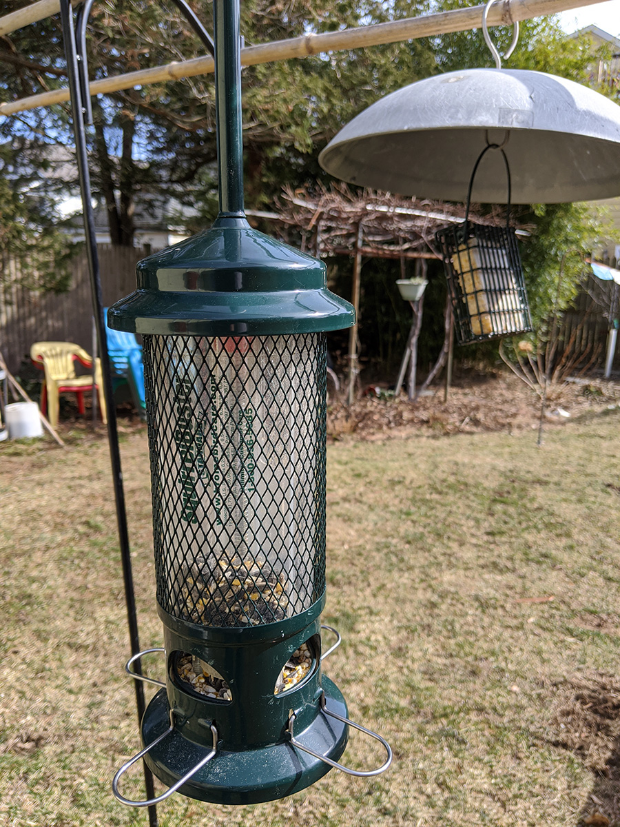 with temperature in the upper 50's, i biked to my parents place in the early afternoon to refill the bird feeder, which i could see was near empty again. along the way i hit up a few more pokestops and captured a handful of new pokemons. that's one of the perks from taking a pokemon hiatus: many more generations of critters i've never seen before, it's like a brand new game now.
