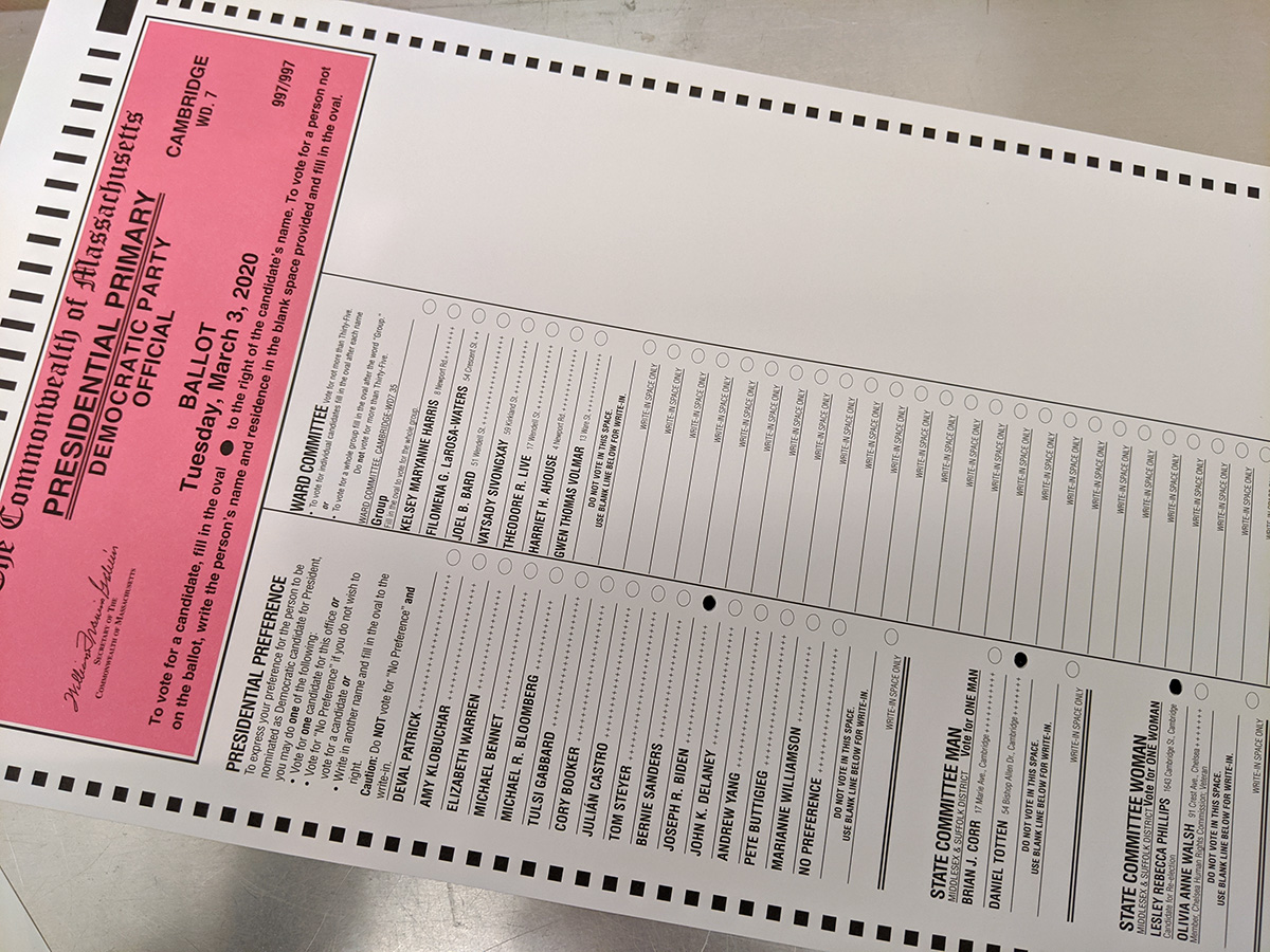 today was super tuesday, i walked down to the nearby elementary school to go cast my vote in the late morning. i passed by victor who was working on his van, he decided to come with me to vote, even though he seemed oblivious to the fact that today was the primary. with the escalation of the coronavirus panic, i was curious if anything had changed. it as business as usual, except there was a bottle of purell set up outside. i got my democratic ballot (i register as independent, which in MA means you can choose which ballot you want) and went in one of the booths. so with pete out of the race, i was going with biden. i had my doubts about him, but with his big south carolina win and seemingly a bunch of former democratic presidential candidates throw their support to him, he was the clear choice. after i finished, i saw victor still hadn't voted yet. apparently it's been a while, and they needed to check his id to verify his credentials. i decided to wait for him to finish, but it took longer than anticipated, and it felt a little awkward just standing there. finally he got his ballot and cast his vote. he told me he wasn't able to get a democratic ballot because a while back he'd forgotten he registered as a libertarian, so he ended up with a libertarian ballot, not even knowing who the candidates were.
