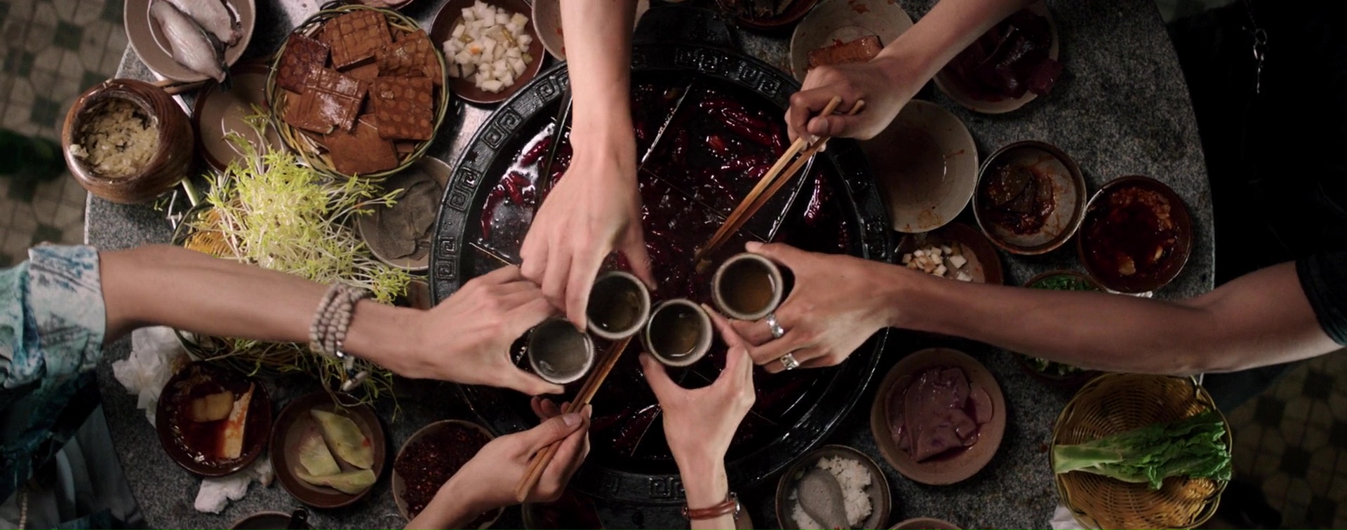 i finally finished watching chongqing hotpot (2016), the sichuan-language bank heist film that takes place in chongqing. the city itself is so distinctive it's its own character almost; a chongqing bridge always seems to be in the background somewhere. as much as i love the scenery, and the language, and the nostalgia, the story itself has several plot holes. one thing that really bugs me is the lone female character speaks in mandarin, but whenever she's eating hot pot with the guys, she uses sichuan dialect even though they never explain why. my personal theory those hot pot scenes were filmed earlier, before they decided to make her character speak only mandarin.