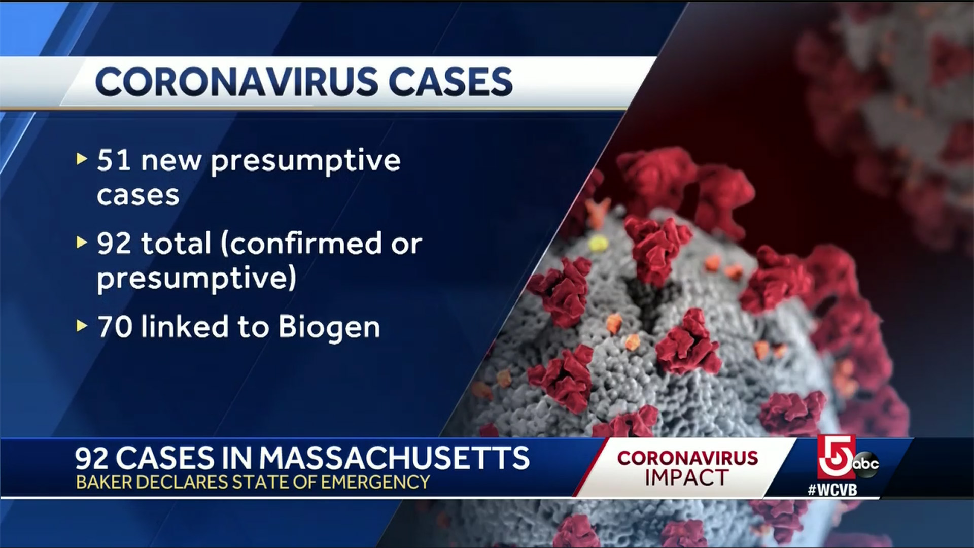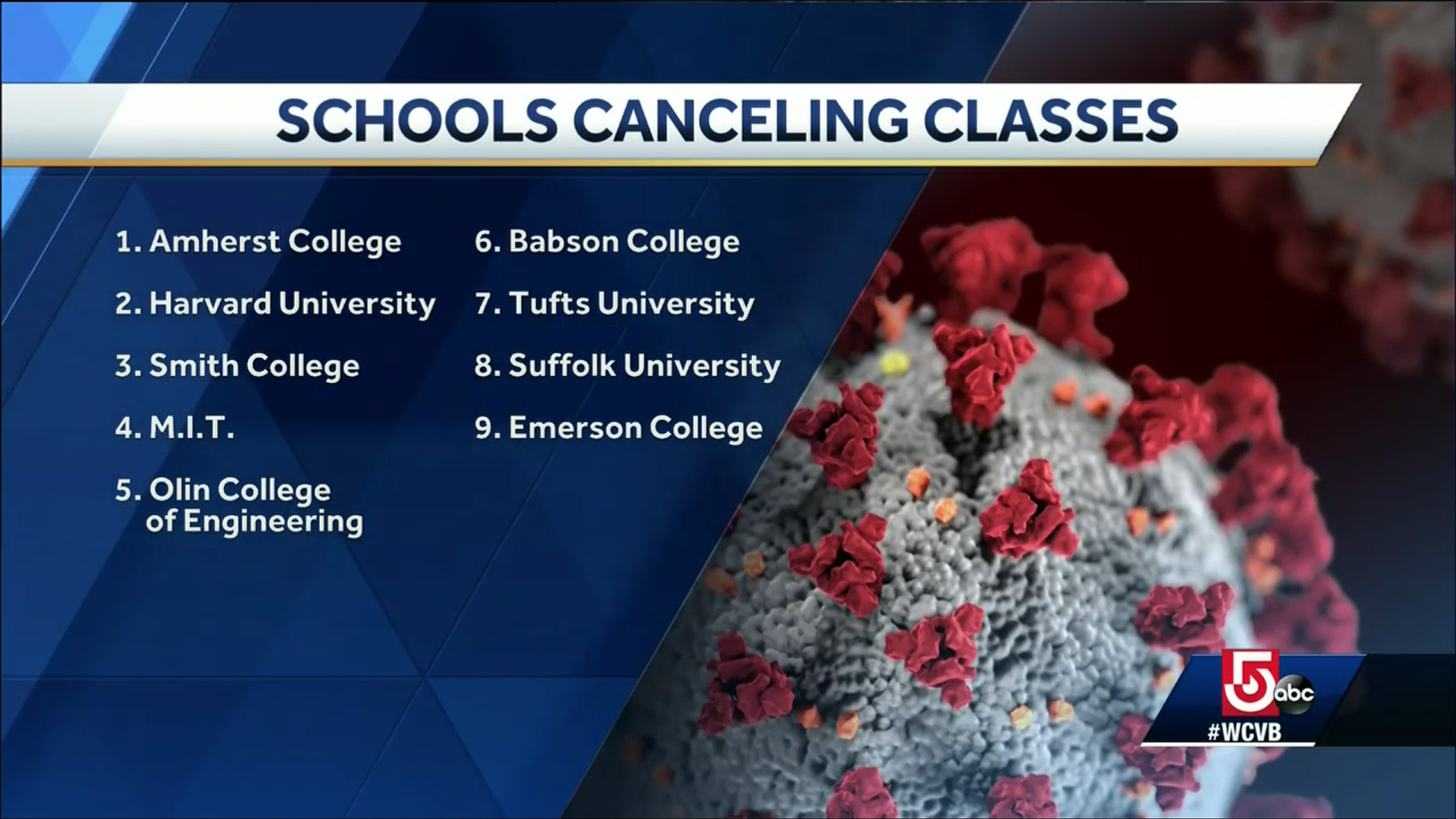 the big news today was harvard canceling all classes for the remaining semester due to the coronavirus and asking students to take their courses online. later in the afternoon governor baker announced a state of emergency for massachusetts, followed by news that MIT was following suit and canceling all its classes a well.