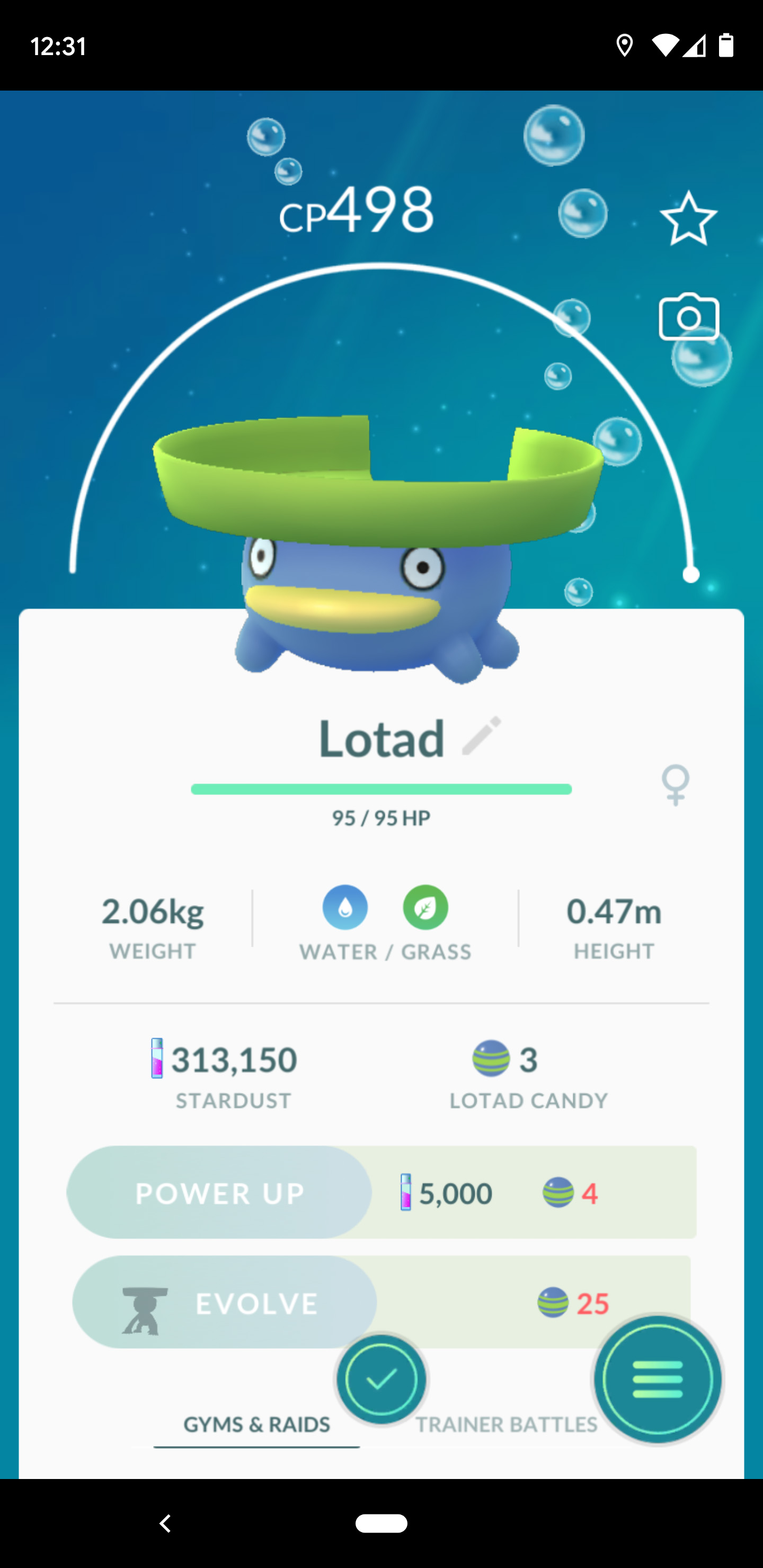 caught a bunch of new pokemons today. i read that because of the coronavirus, niantic is seeding more critters to capture so people don't need to go outside. that's all and good, but eventually people run out of balls and they either buy more or go out and hit some pokestops. the favorite one i caught today was the lotad, but seems to be a combination of a lotus with a tadpole. however, after i looked at it some more, that's actually a lilypad leaf, not lotus leaf. i also evolved some new pokemons as well, a glaceon from an eevee, and a primeape from a bunch of mankeys i caught today (most be mankey season).