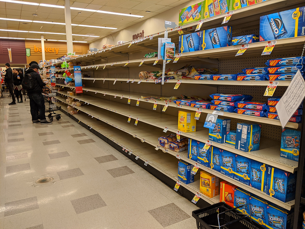 the beacon street star market is nearly always empty. even on crazy days like before thanksgiving, it's never anywhere as busy as market basket on a slow day. i should've realized something was up when all the shopping carts normally outside were missing. maybe they put them away in storage, i thought. but the moment i stepped inside it hit me: coronavirus panic buying was in full swing. i haven't seen this star market so busy in a long time, if ever. there were people shopping in every single aisle, with some shelves nearly empty of products, particularly the pasta, canned food, and bread shelves. the workers couldn't restock the items fast enough, and empty boxes laid on the floor, they didn't even have time to clean up. nobody was wearing masks, and none of the cashiers had gloves. it was still business as usual, even though the coronavirus was in the back of everyone's mind.