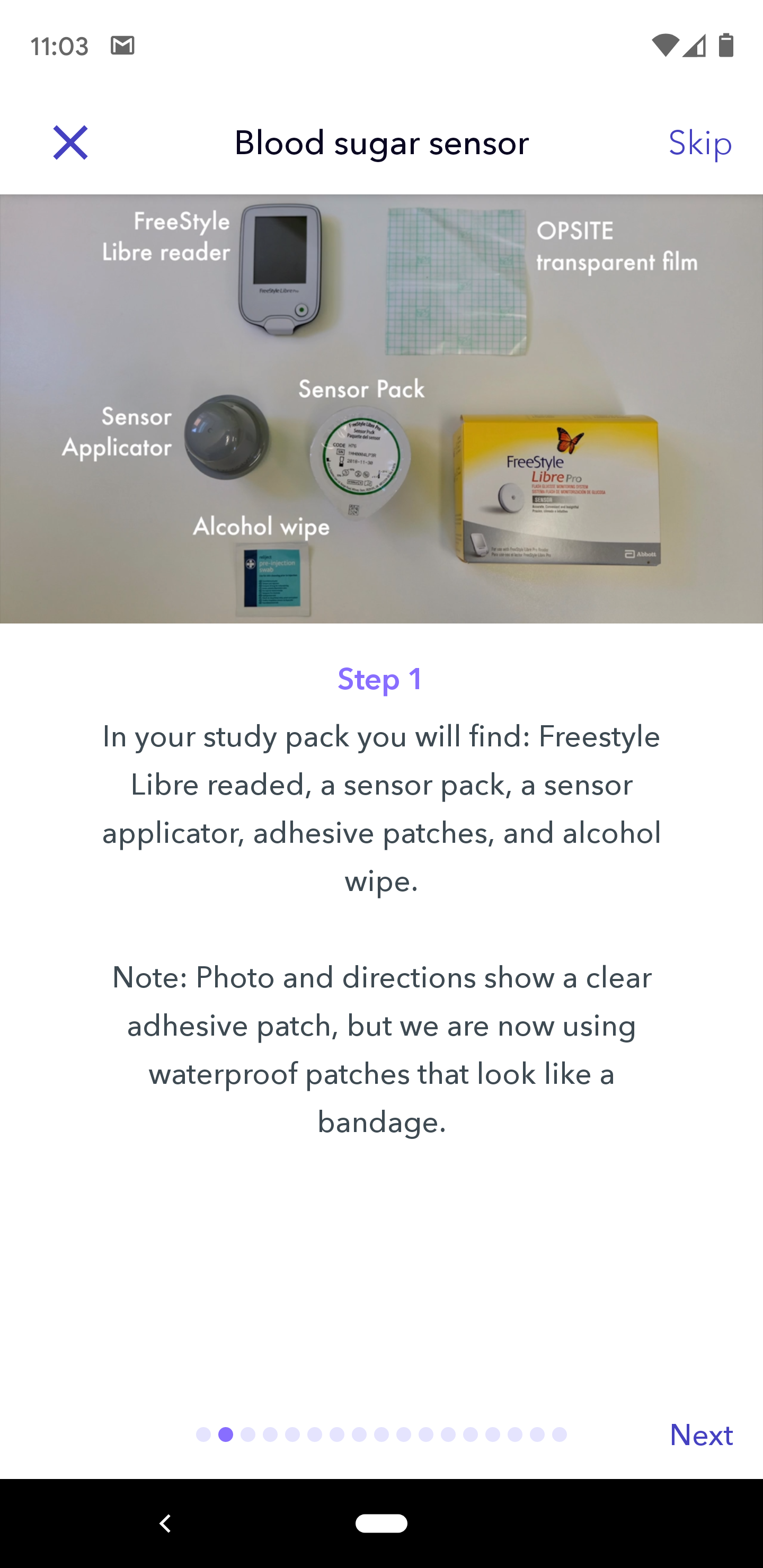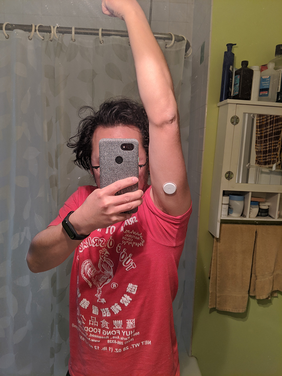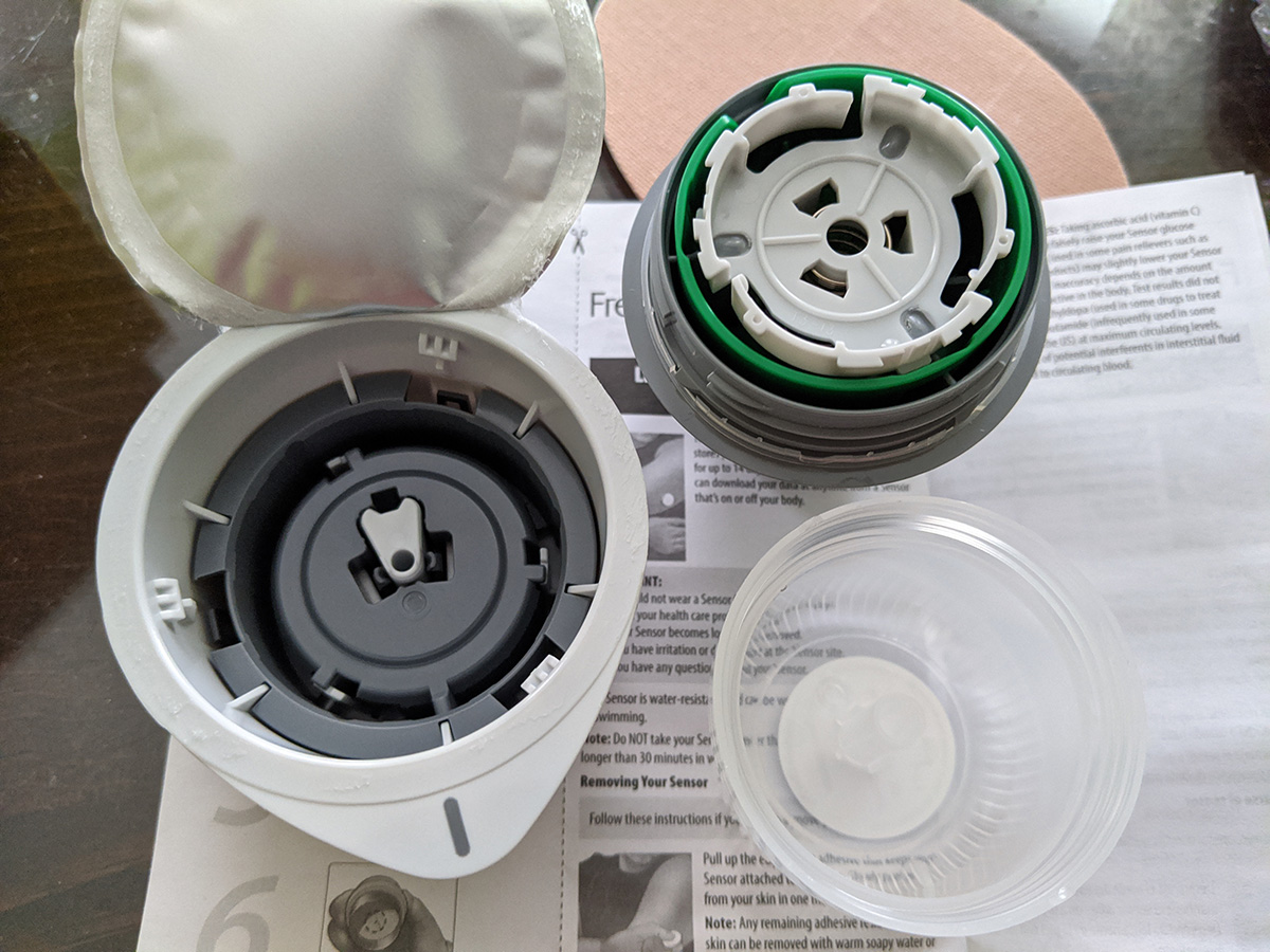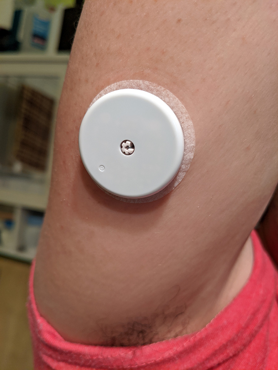 i knew it involved sticking a needle into your body to monitor your blood glucose level, that was the part i was most afraid of. i searched for some info online (this 2017 blog posting from a german woman was really helpful), they never call it a needle, but refer to it as a filament. when i finally saw the thing for myself, it didn't look like a filament, it looked like a needle, about 1 cm long, that would be embedded in my body for the next 10 days, like having a tack stuck in your arm. instructions told me to get somebody to help, but i did it by myself in the bathroom mirror. after picking a spot on the back of my right arm and clean the skin with an alcohol pad, i placed the applicator to my skin and pressed down. i was ready to feel the pain but all i heard was a sudden pop as the spring-loaded applicator suddenly attached the sensor to my body. the weird thing was it didn't hurt at all. by psychologically, knowing that there's a needle embedded in my arm, left me anxious, like at any moment i could start feeling the needle.