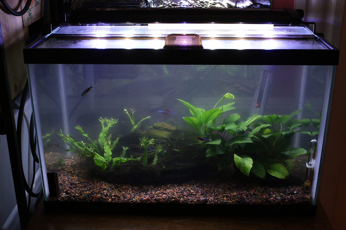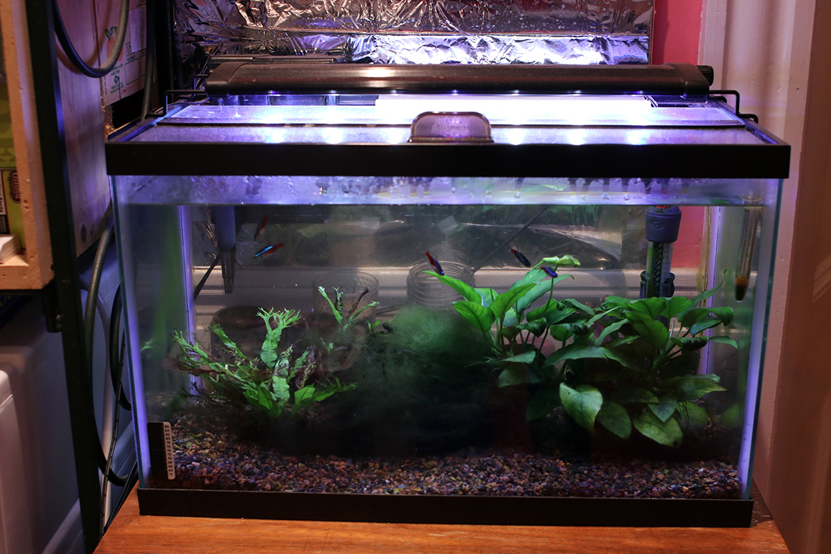 my second project was to finally clean the aquarium. i haven't cleaned it since february 11th, more than a month ago. the algae level wasn't too bad, not on the glass at least, since i cleaned it with the magic eraser last time. there was a clump of hair algae on the driftwood, and the water level had reduced by about an inch, so it was more about refilling the water. it took about an hour to clean, i also changed out the activated carbon.