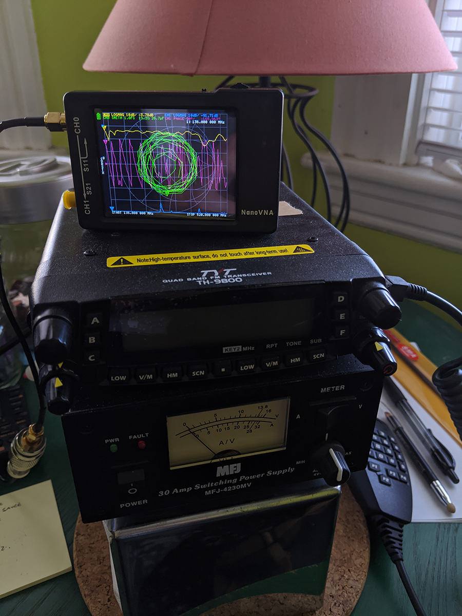 playing around with the nanoVNA testing the DBJ2 antenna, i learned how to save settings into the 5 memory banks. i created a setting that only checks for 2m, SWR and smith field.