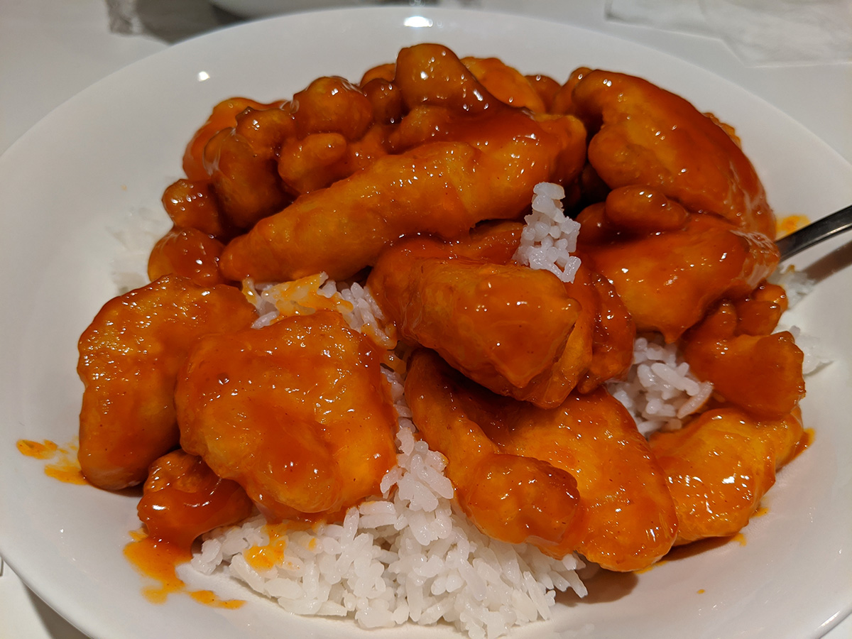 i didn't start making dinner until after 8:20pm. i'd bought a box of frozen innovasian cuisine orange chicken breast weeks ago, thought tonight would be a good night to try it, trying to eat as much different foods as possible on this 2nd to last day of the predict 2 study. i prepared a cup of white rice in the cooker and once that was done cooking, i started on the orange chicken. i thought there was going to be a lot, but the box itself was bigger than the content inside, which was half breaded chicken breast and half frozen orange sauce. i warmed up in the sauce in hot water while i was frying the chicken. later i poured the sauce in with the chicken. portion-wise, it was probably for 2 servings at least, but i ended up eating the whole thing, including a big bowl of rice. it didn't taste like any orange chicken i know, the chicken was sort of bland, the sauce was more orange-colored syrup than anything orange-tasting.