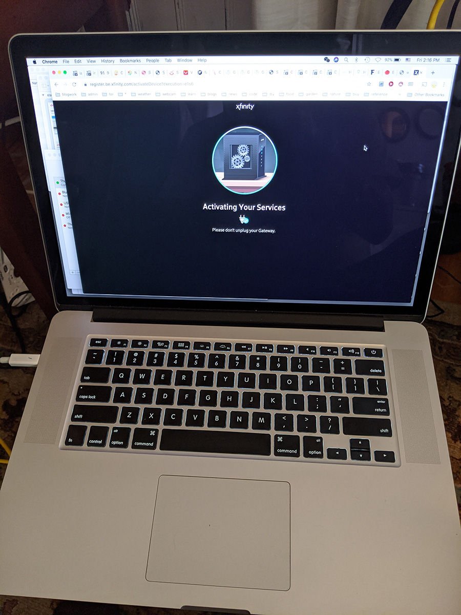 with the modem working, i connected it to the wireless router. after a few minutes the network was back up. there seemed to be some growing pains though, as speedtests were kind of hit or miss, sometimes it'd show 100+ Mbps download speed, other times it'd drop into the single digits. that too me seemed more like cablewire issues. though on my android app it didn't give me the option, using my sister's apple app for the router asked me if i wanted to update the firmware. i said yes, it took a few minutes, didn't even lose internet connection. at this point we can only wait and see. test drive the new modem, see if it breaks. if it does, it means it's wire issue and i need to call comcast to set up an appointment. otherwise, we should be good to go.