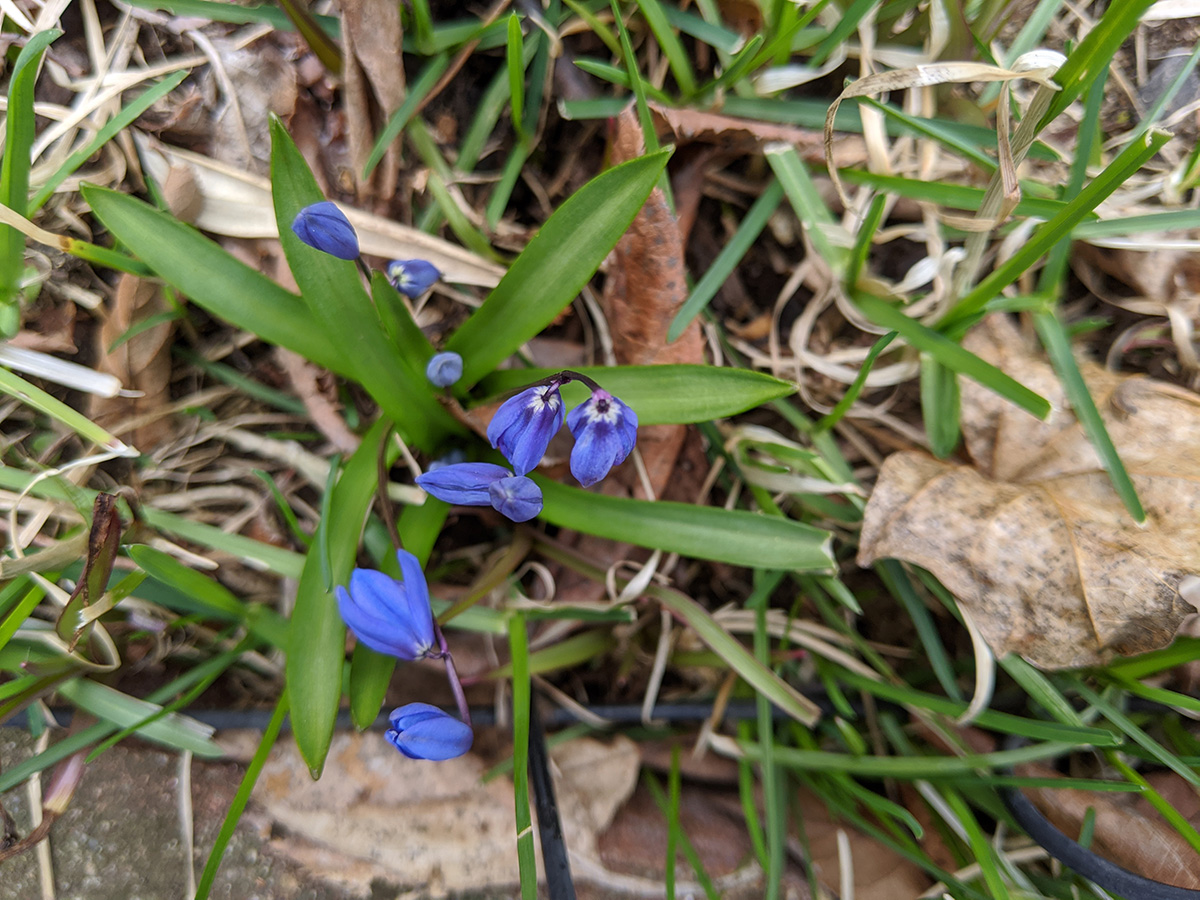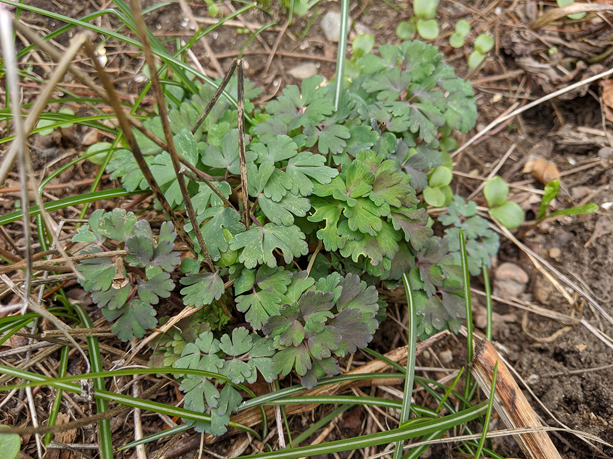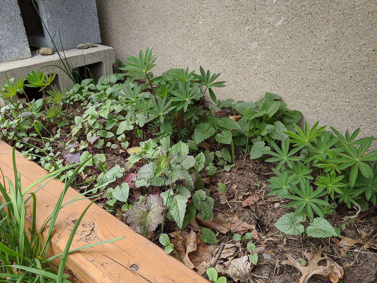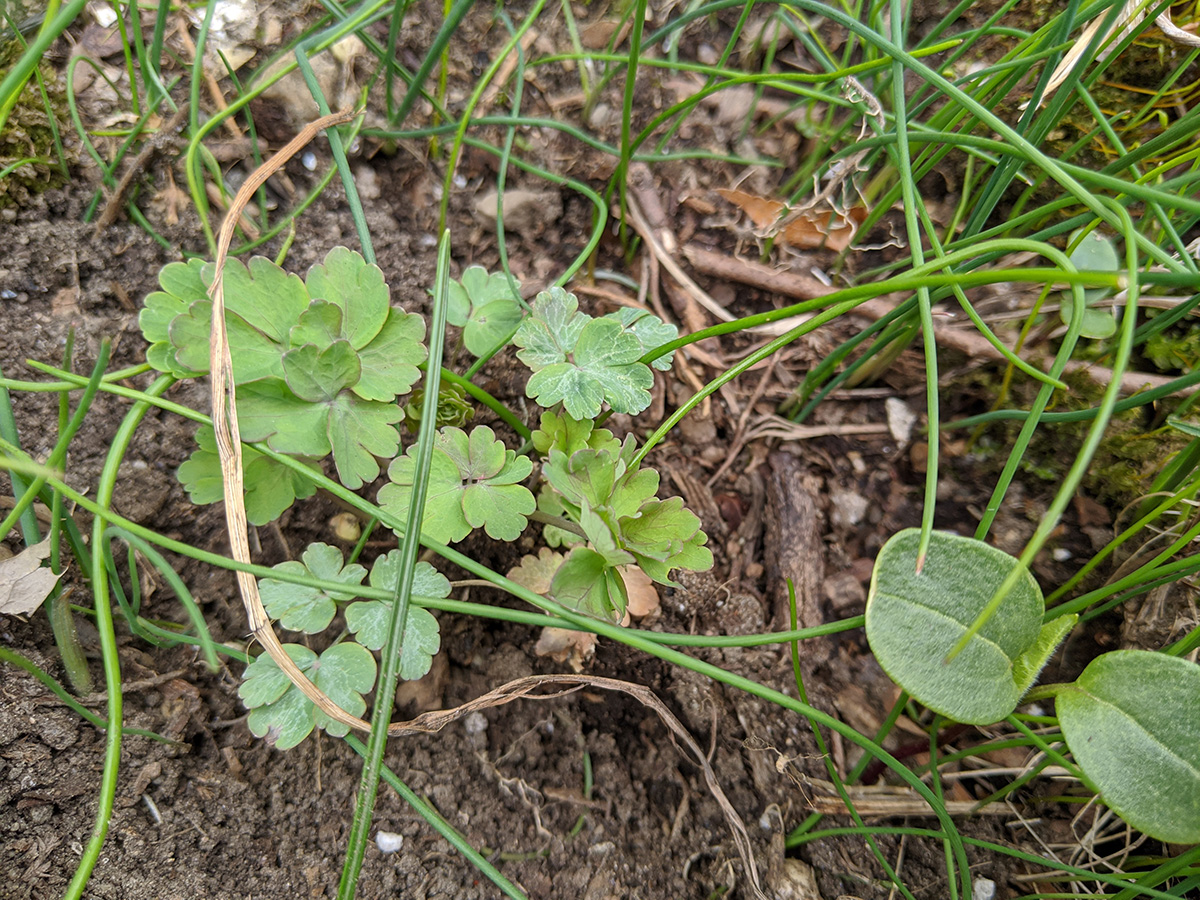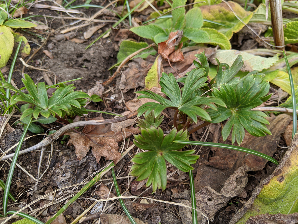in the backyard, the following plants have re-emerged: columbines, lupines, money plants, monkshood, daffodils, scillas, garlics, and peonies. all the columbines and lupines i transplanted in the fall seemed to be survived the rather mild winter.