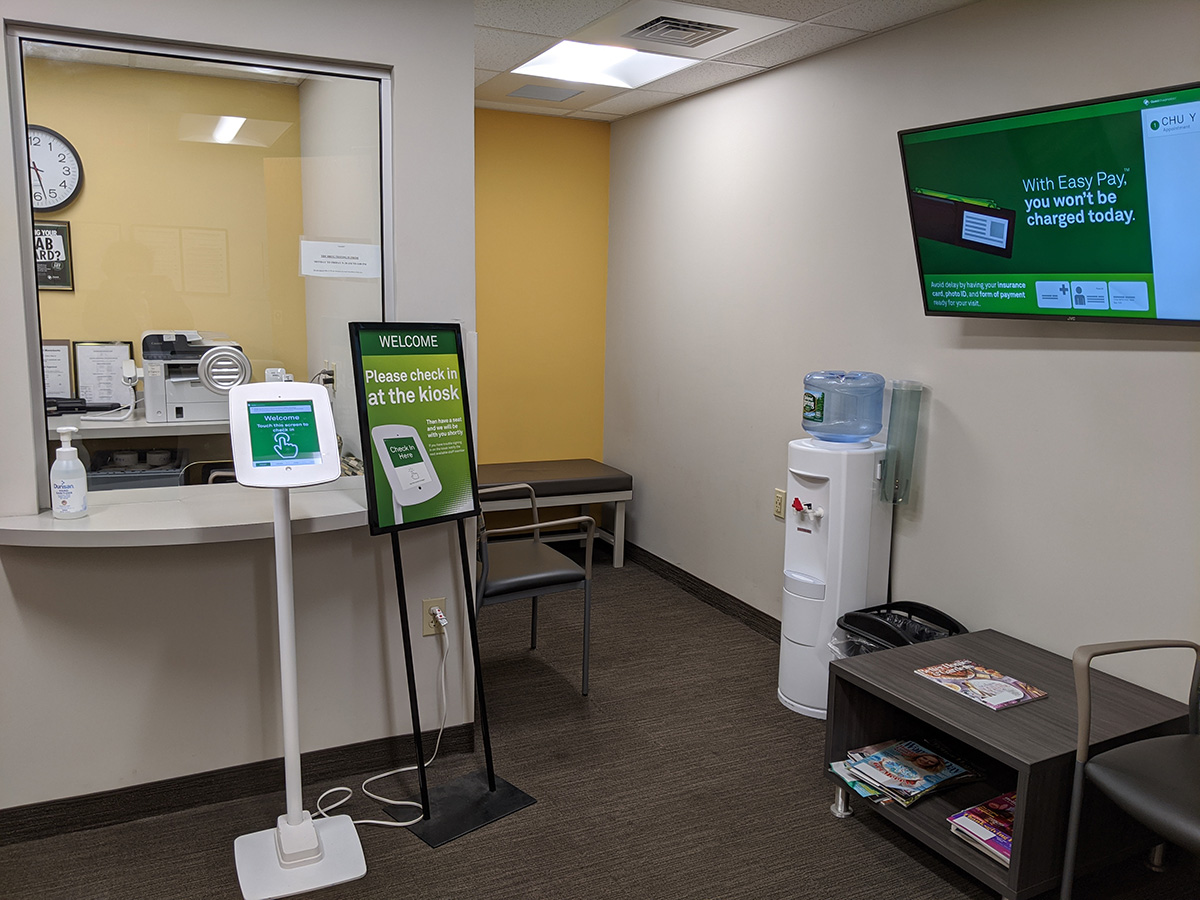 i didn't know what to expect, but the quest diagnostics center was just a single office in the suite of other offices in the building. the place itself is pretty picturesque, built along side a brook, makes me wonder if it was an actual mill at one time. i went in, there was a man getting dressed. i walked behind him to get to the touchscreen ipad to register my arrival, he didn't notice me and was surprised when he finally saw me. there was nobody else there, not even a receptionist behind the plexiglass window. there was a wall-mounted television broadcasting some morning talk show, with a crawler underneath with my name and time on it. a few minutes later a came come out to ask what i want tested. i gave her the predict 2 provided forms, she disappeared to look over them. the nurse was dressed in full protective gear: mask, gloves, shield, gown. i saw in the small waiting room, sipping my hot water to keep myself from coughing.