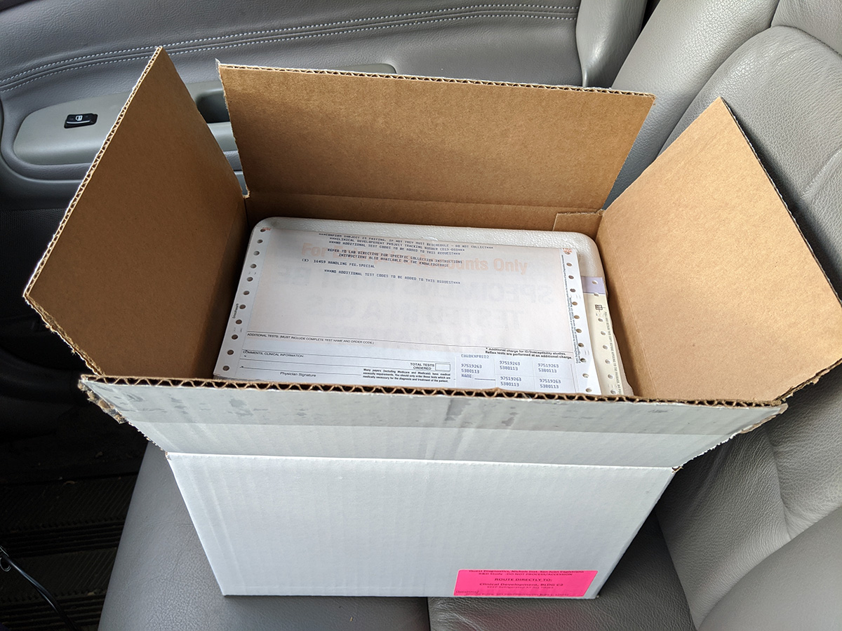 i left by 9am, while kevin was eating breakfast in the kitchen. i brought the specimen box, an icepack inside the styrofoam exterior. i bumped into my opposite neighbor walking her dog. she asked me a strange question, "are you okay?" i thought it was in reference to the box, which i started blabbering about how it was a part of a nutrition study, but later i realized that wasn't why she was asking, because this was the same neighbor who saw me talking outside to my doctor and coughing. she probably thinks i have the virus.