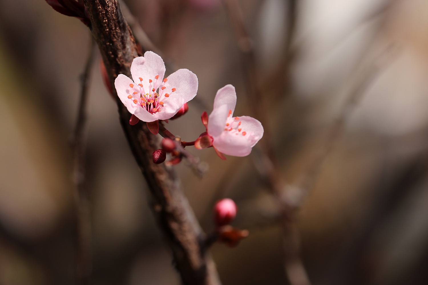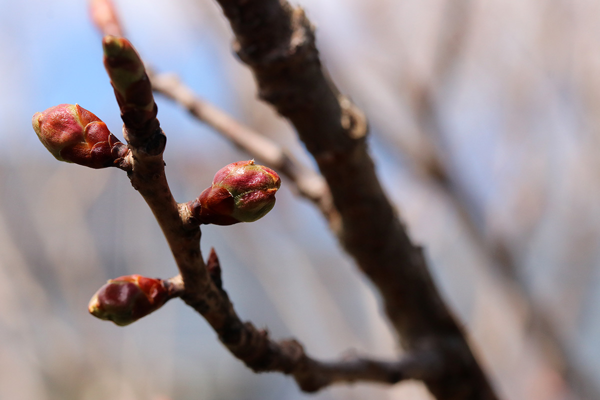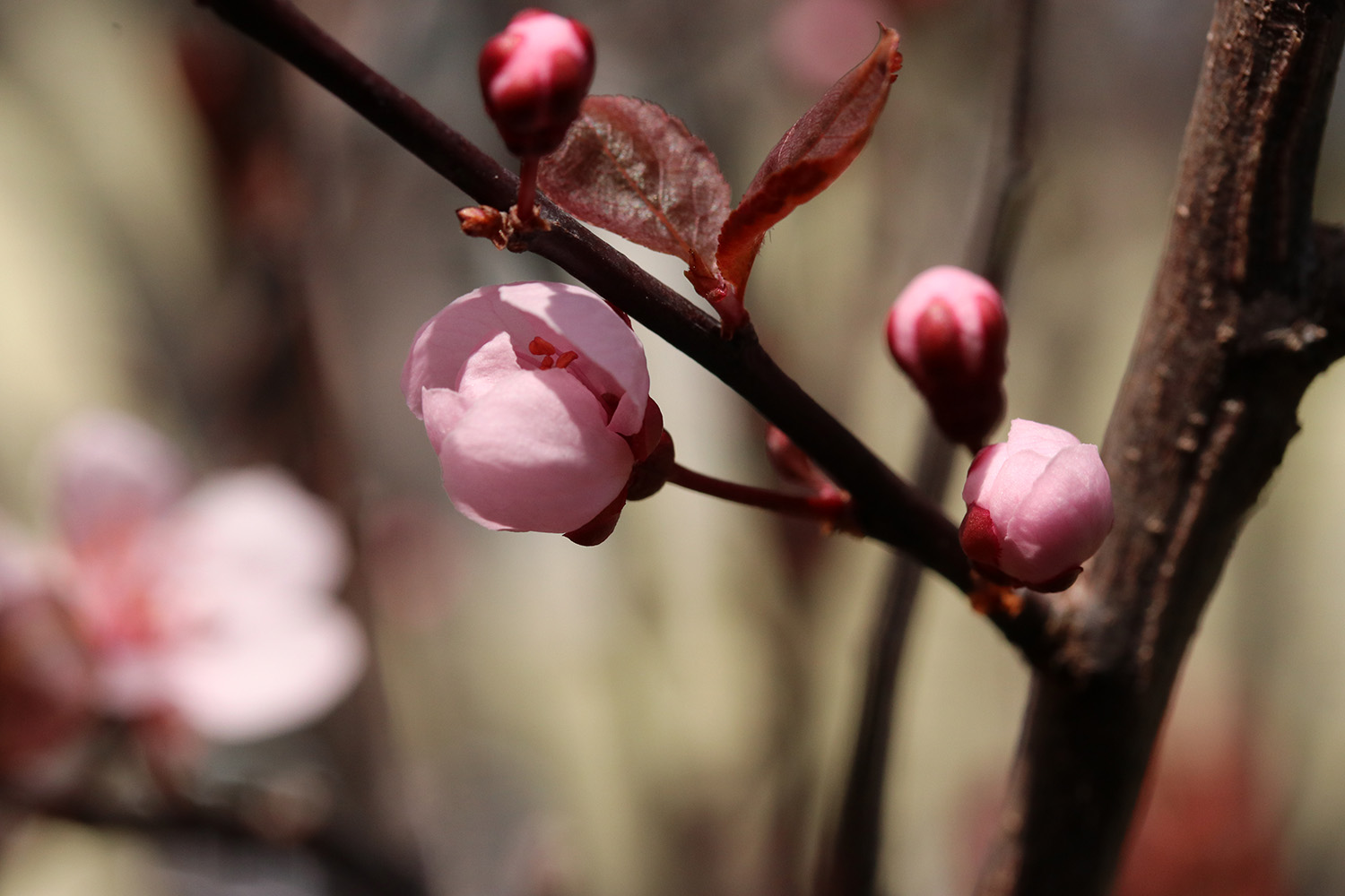 i spent some time surveying the backyard and doing a bit of yard maintenance including raking some dead branches and weeding (creeping bellfowers, escaping lawn grass, and dandelions). more plum flowers have blossomed, but it's not quite a show yet as the plum tree still looks sparse. the kwanzan cherry buds have really started to swell up, they'll put on quite a show once they begin to blossom.