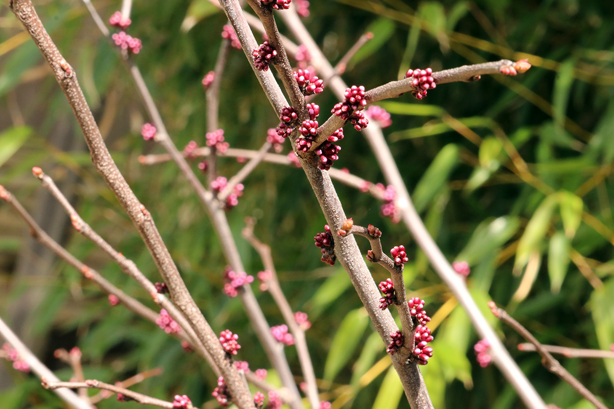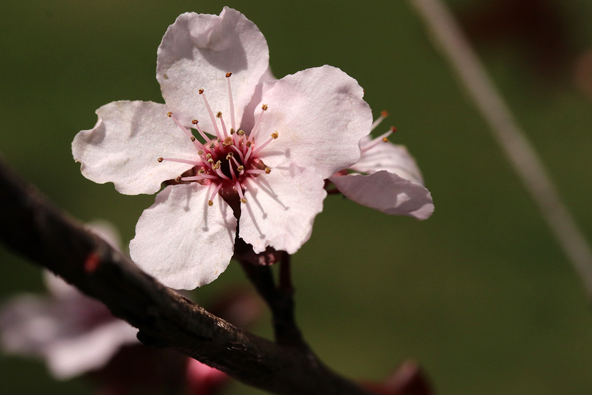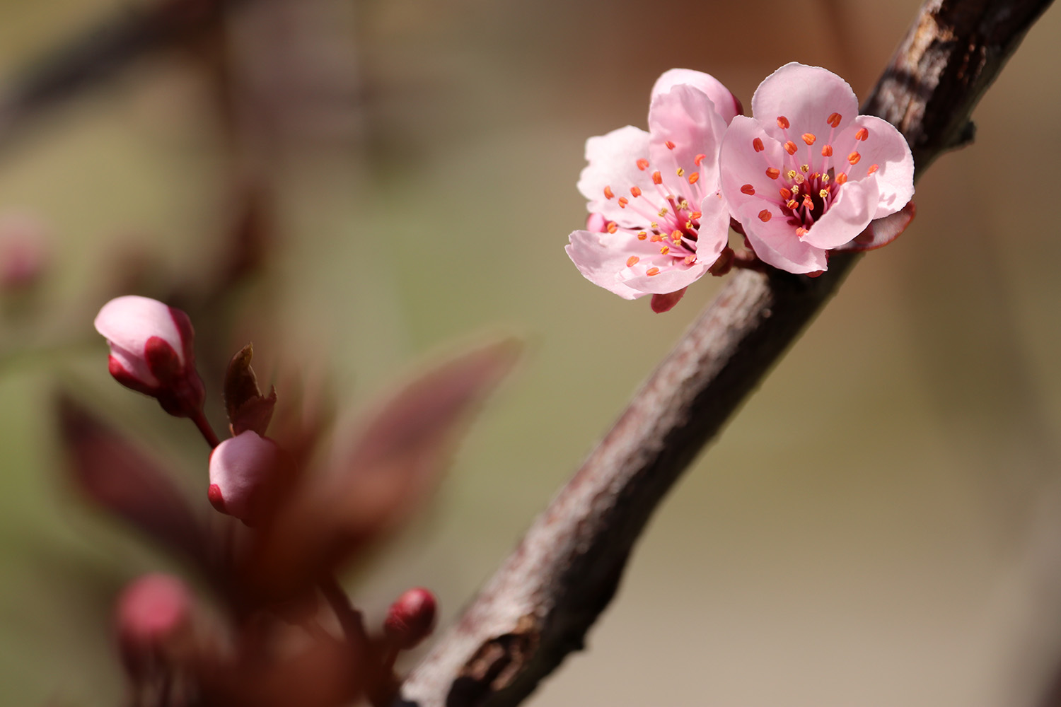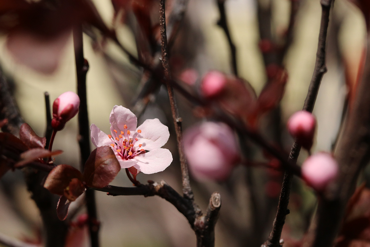 i spent some time surveying the backyard and doing a bit of yard maintenance including raking some dead branches and weeding (creeping bellfowers, escaping lawn grass, and dandelions). more plum flowers have blossomed, but it's not quite a show yet as the plum tree still looks sparse. the kwanzan cherry buds have really started to swell up, they'll put on quite a show once they begin to blossom.