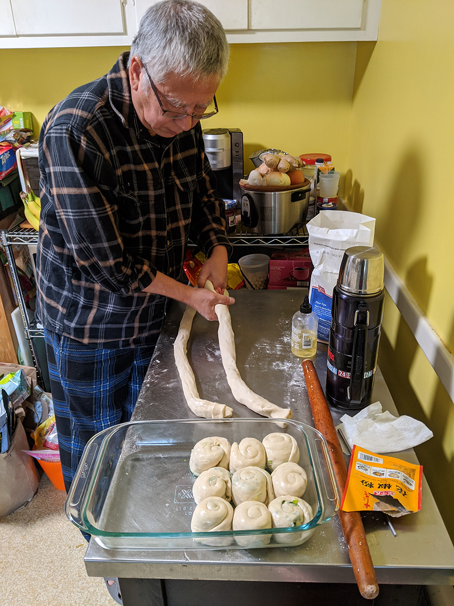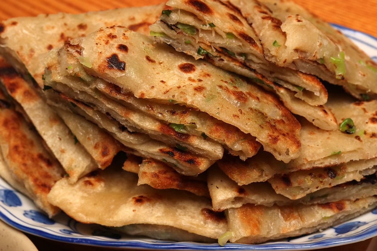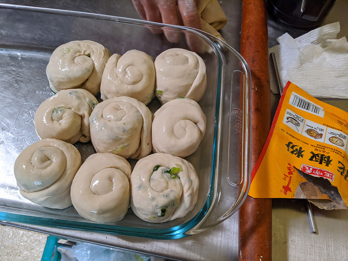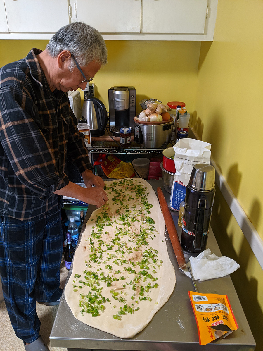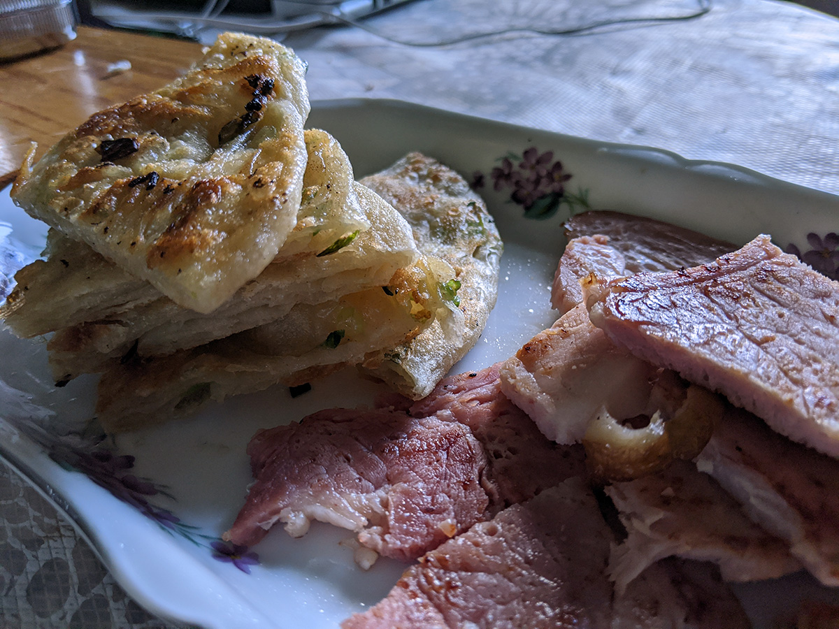 we had more scallion pancakes and baked ham for dinner, along with some rice porridge.