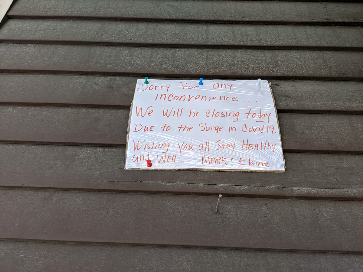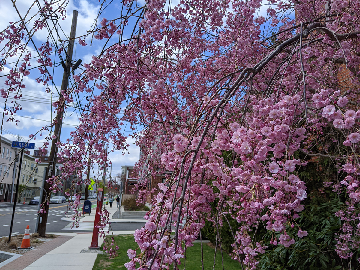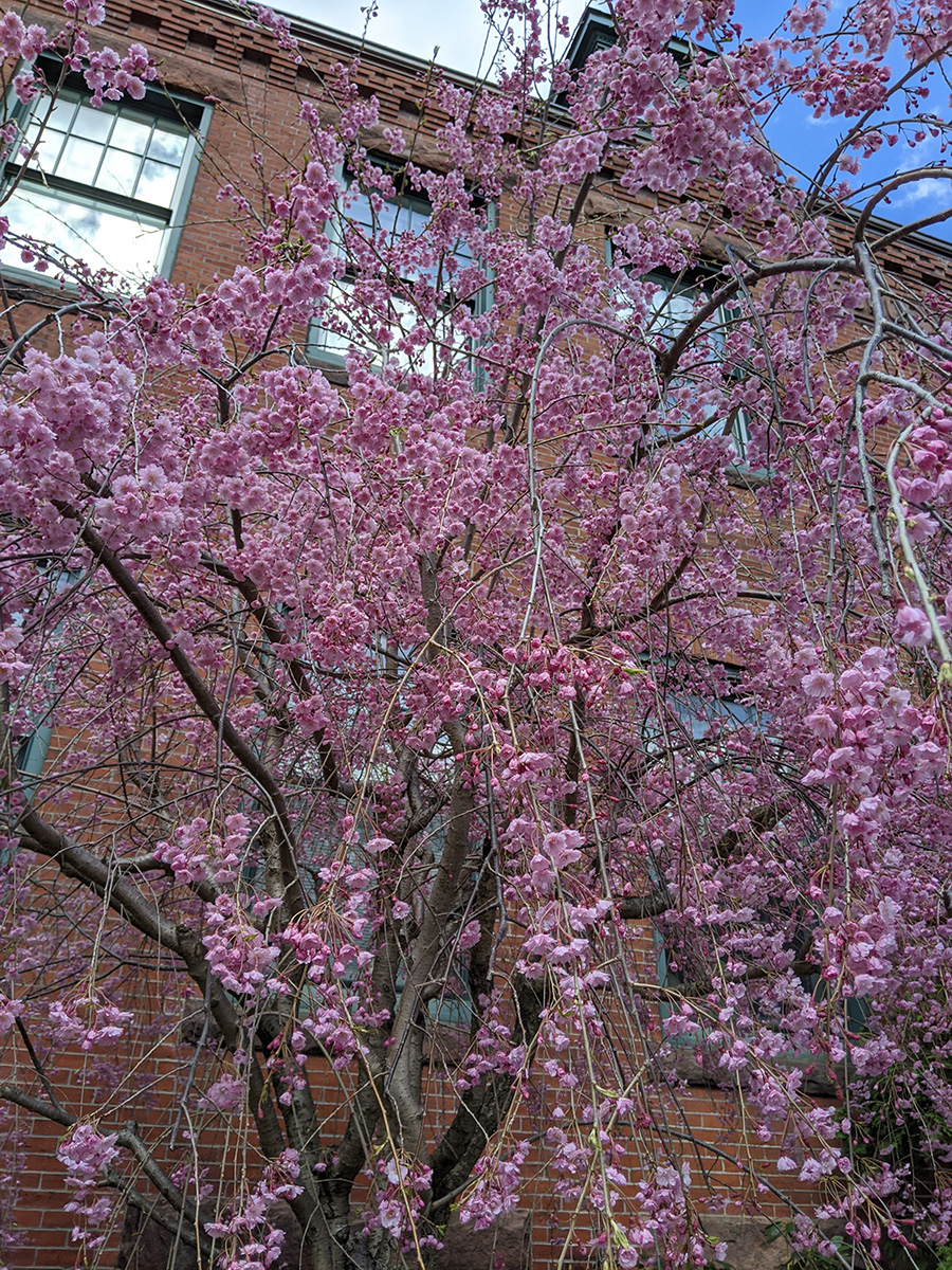 soon after i came home i was out again for the third time. this time i didn't bother wearing a mask, i was visiting a nearby pokemon go gym to leave behind a pokemon so i could potentially earn 50 coins. i also checked out some "store closed"" signs and a pink weeping cherry tree.