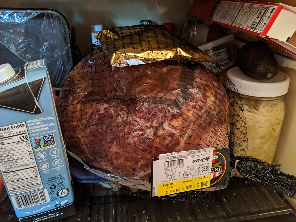 i'd wanted to go to the porter square star market yesterday, didn't think i'd get my chance today. unlike the beacon street store, there was a line about 8-9 people long. the parking lot was mostly empty, cars naturally spacing themselves a good distance from neighboring cars. i didn't have to wait long, maybe about 5 minutes. there were a few people who weren't wearing masks but they were the minority, and all were young. they had plenty of ham, i picked the biggest one i could find. i also checked out the toilet paper aisle, only single-ply single rolls of scottie were available, but there was plenty of table napkins. a homeless couple were eyeballing my ham, the woman said it looked like i was carrying a loaf of bread.