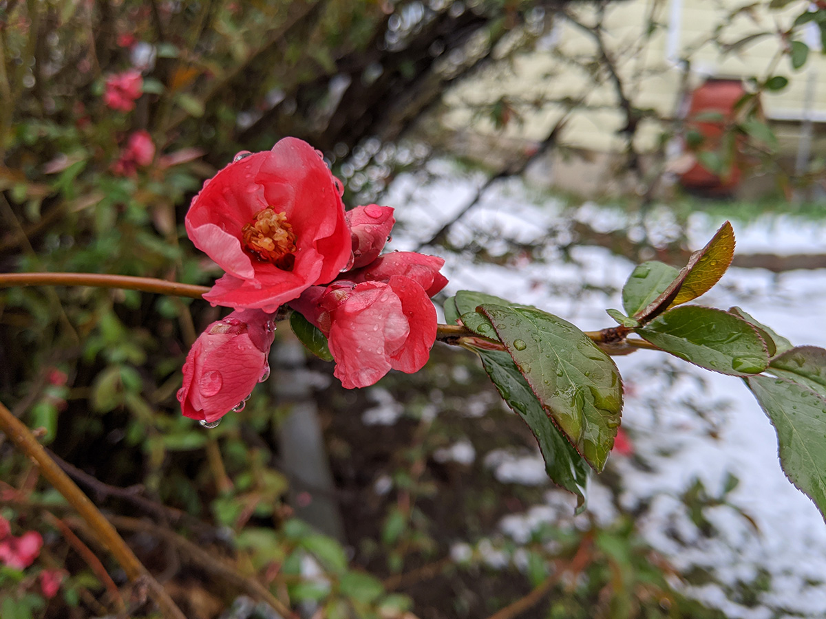 it snowed this morning, about 2 inches, although by the time i woke up it had already transitioned into rain. i don't remember it ever snowing this late before. it's also weird that we hardly got any snow this winter (2-3 inches) but got some in the spring mid-april.