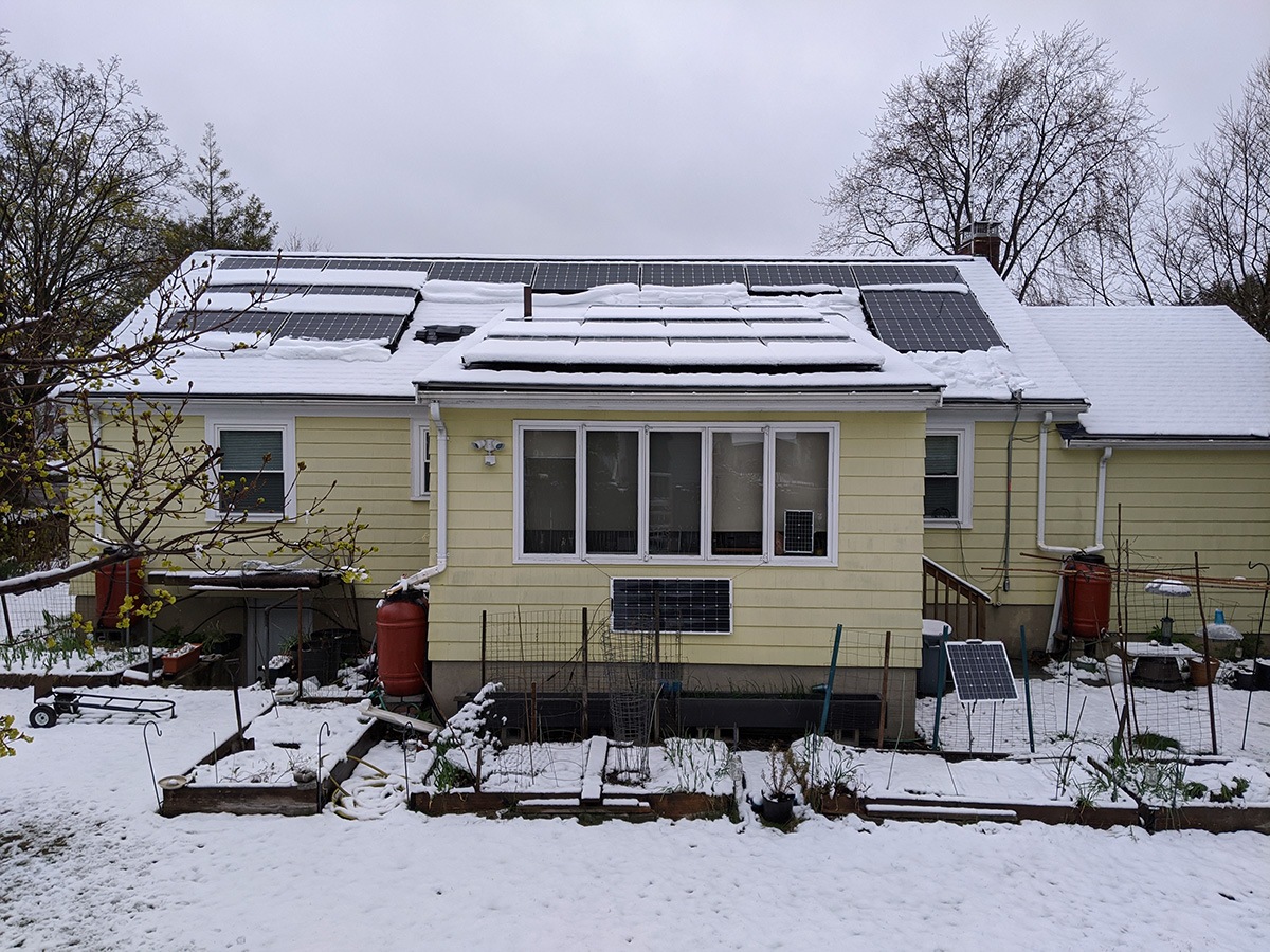 since my sister was going to belmont, i managed to get a ride from her around 11am. she made brunch for us, while i was outside cleaning the snow off of the solar panels. i wasn't expecting to do that in april, hd already put away the roof rake and ladder in the garage. i also refilled the empty bird feeder but didn't bother with the suet as it's basically a squirrel feeder at this point.