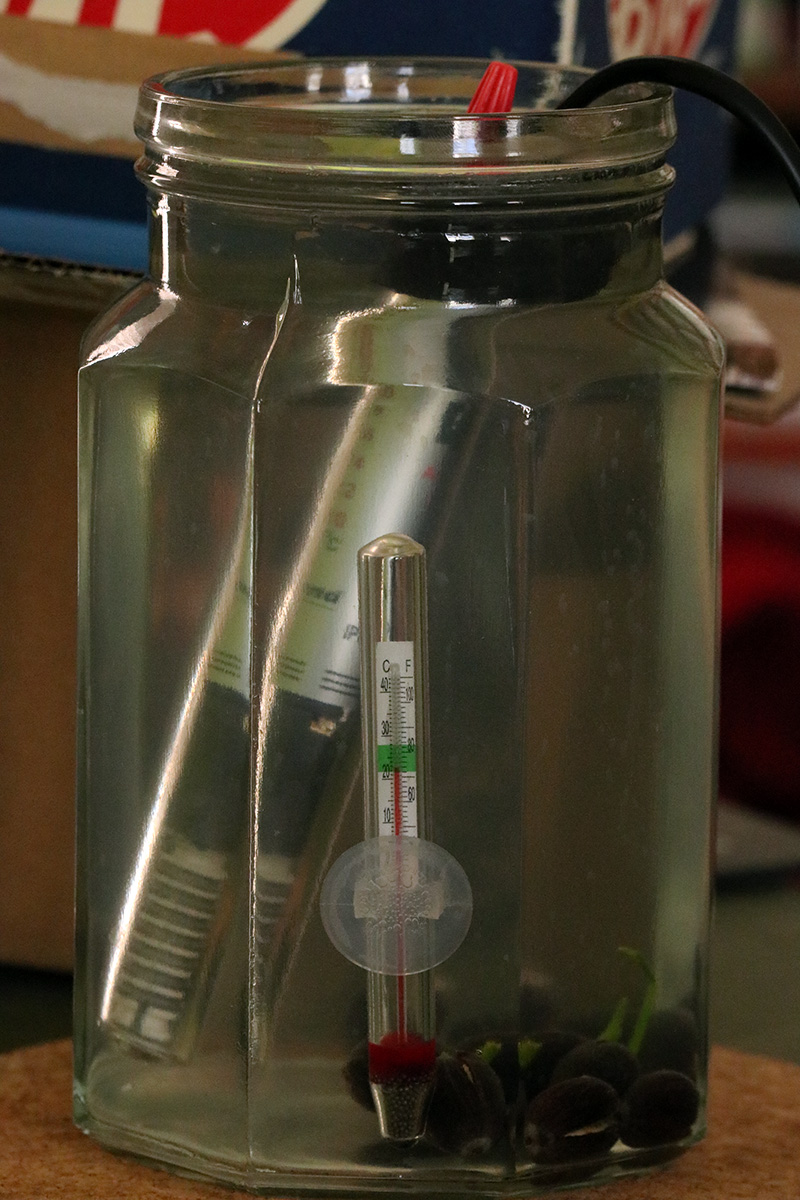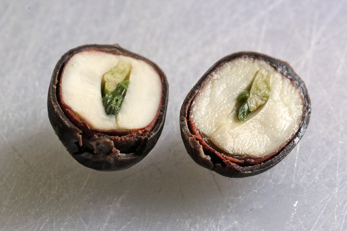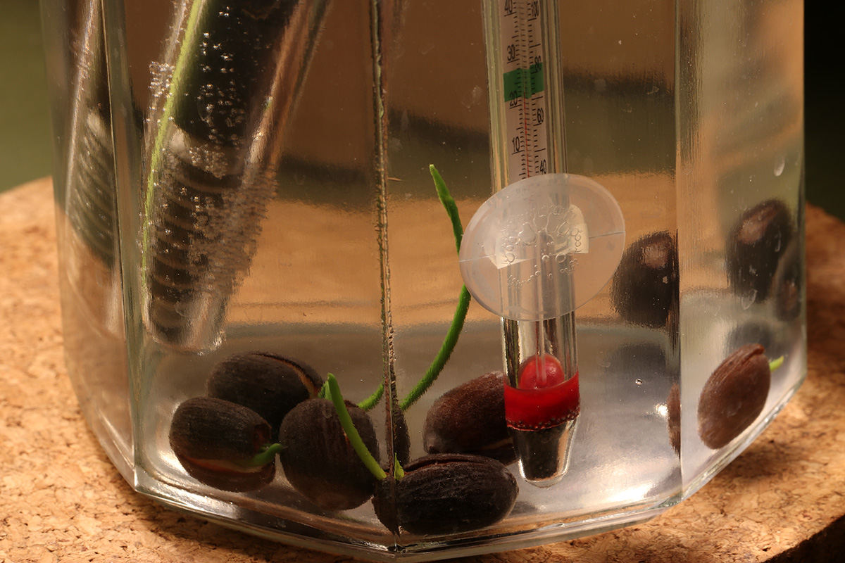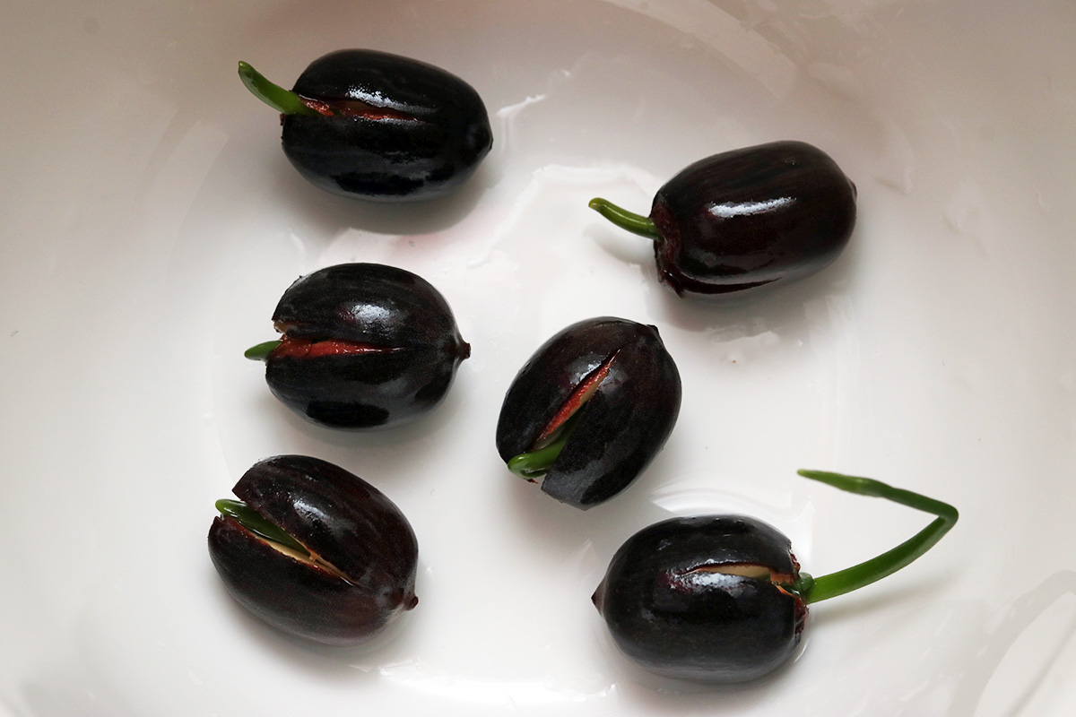 i changed the water of my lotus jar. yesterday 6 seeds looked like they were all going to germinate but today i had confirmation. while pouring the seeds out i must not have been gentle enough because two of the stem tips broke off without me realizing it. hopefully they can grow regardless. there were 3 remaining seeds that had yet to germinate and i thought they were rotten. i decided to cut open the one that looked to be in the worst shape. to my surprise, the inside looked very healthy, there was even a green germ that looked like it might have still germinated given enough time. the thing i did notice was it wasn't able to break the softer inner skin. maybe i didn't sand it down enough to break the inner skin, hence no germination. of the remaining two ungerminated seeds, i scored them a bit more with a pocket knife in the hopes that it will break the inner skin for them to possibly germinate.