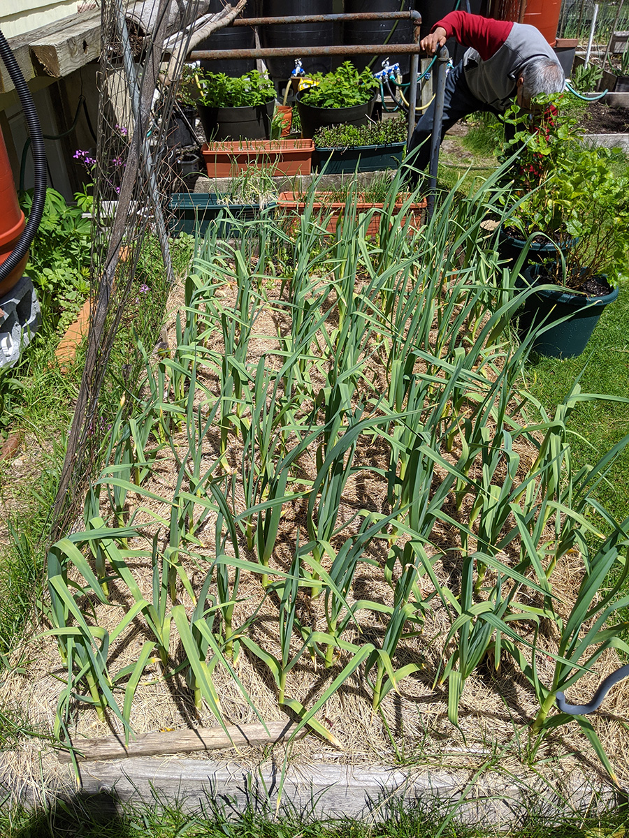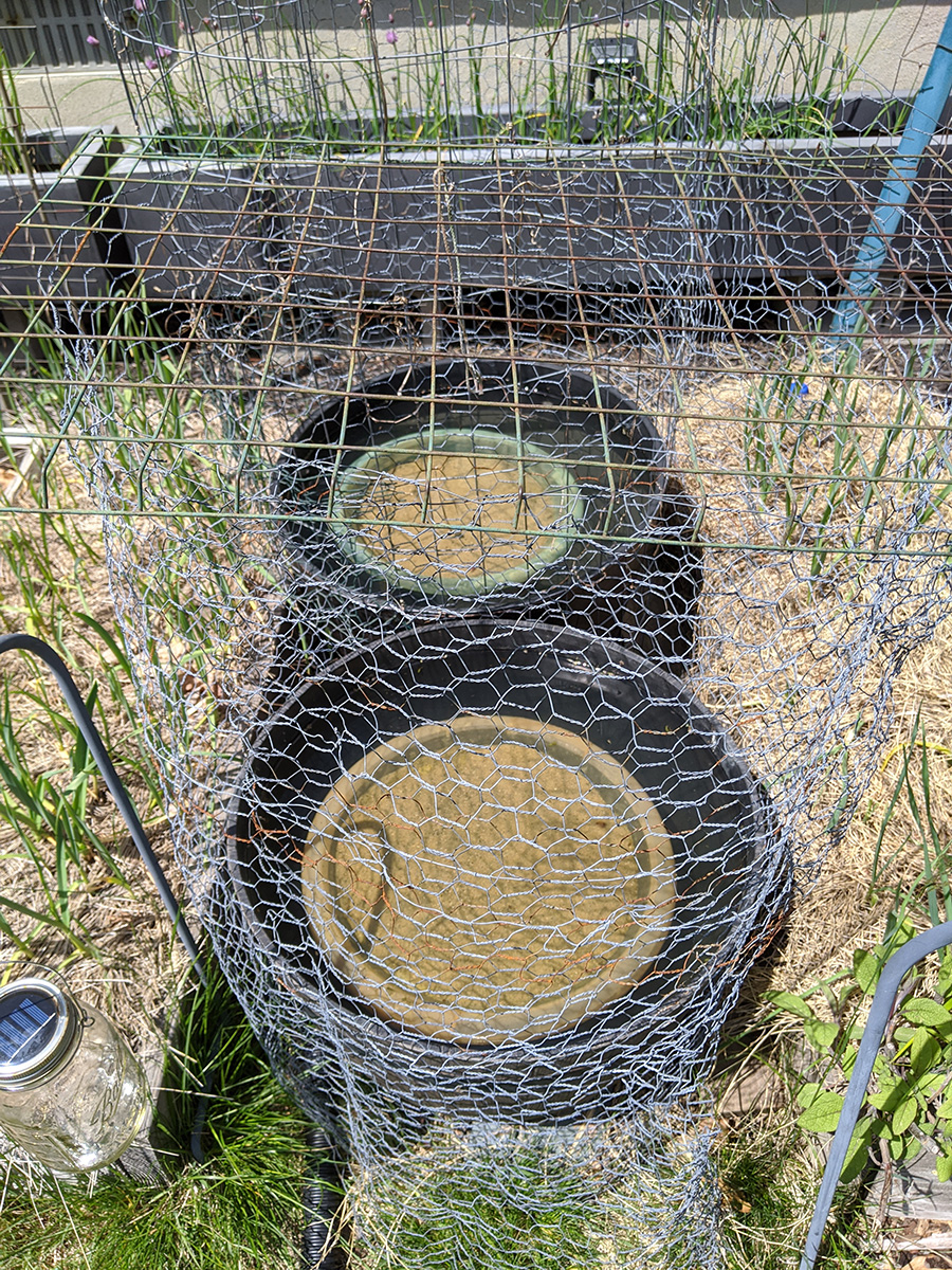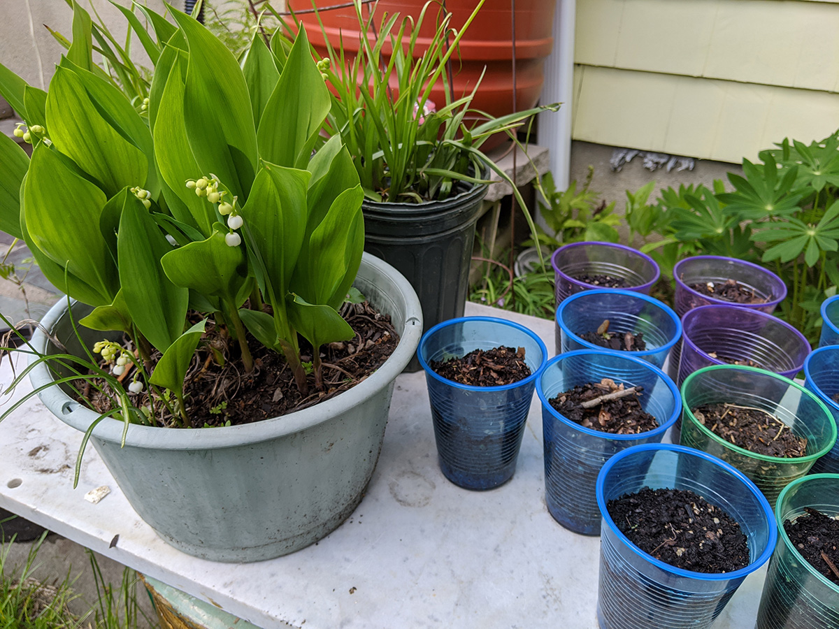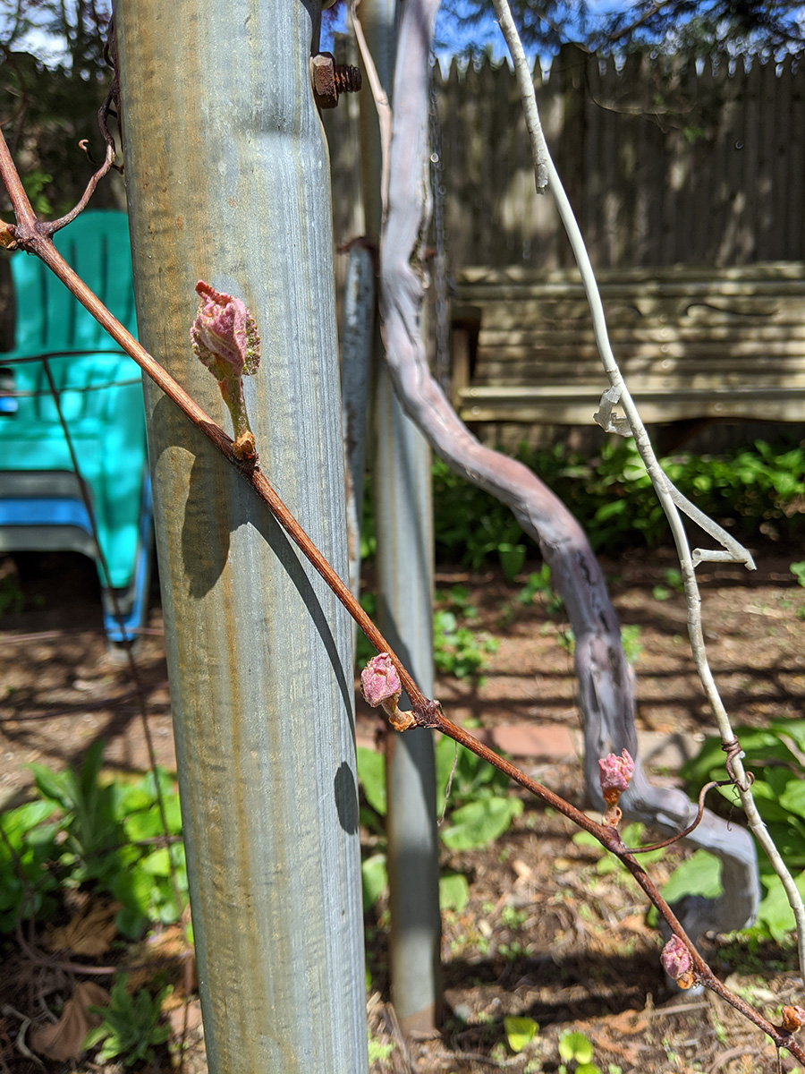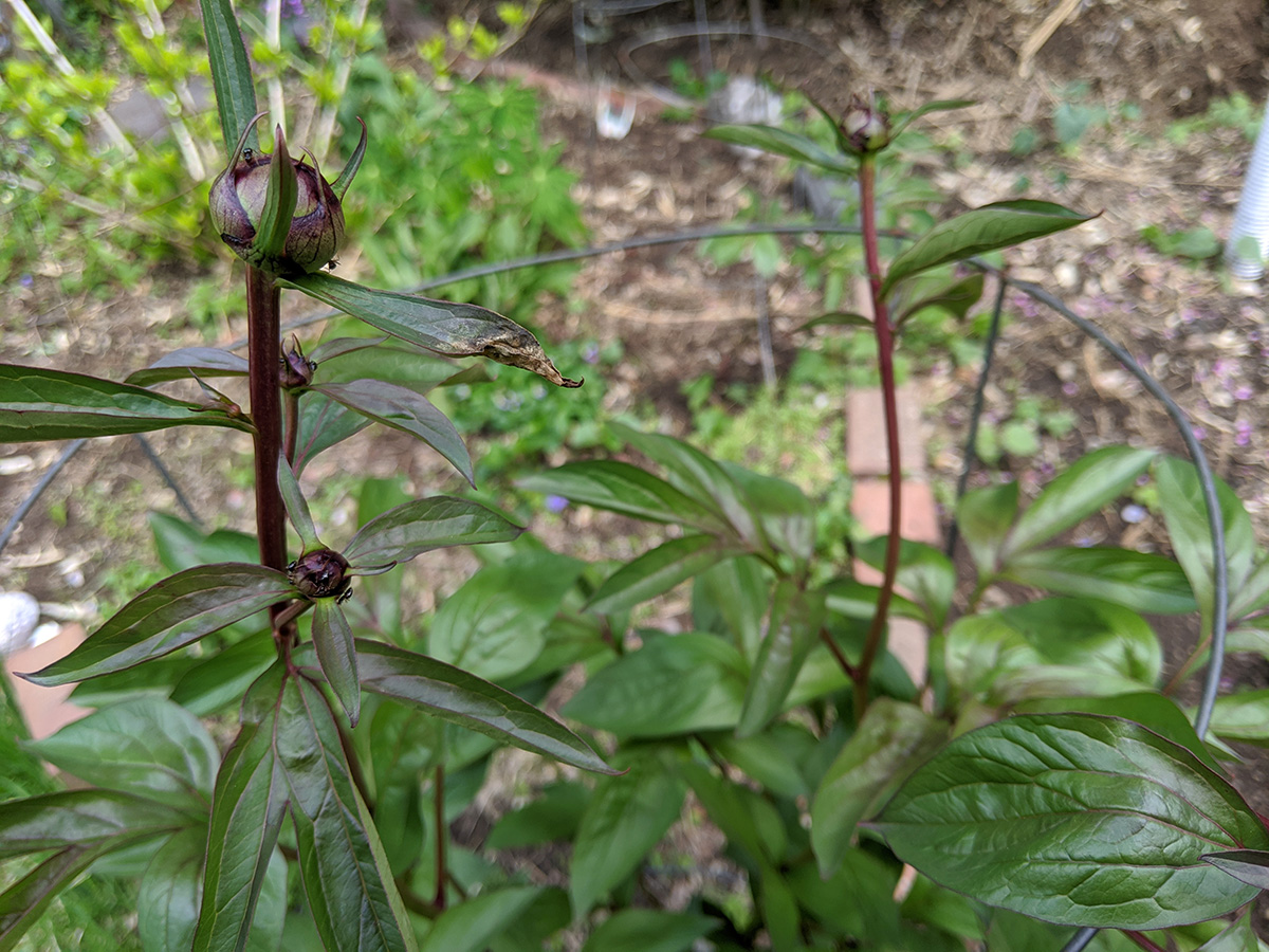 redbud, money plants, chives, and yellow alyssums seems to be the only thing in bloom in the backyard. peony flower buds are swelling and lupines are leafing out but yet to show any flower buds.