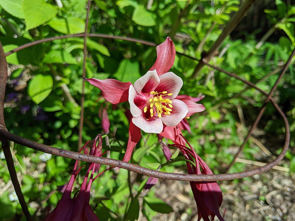 when i got back home i planted another white hydrangea in that space between renee's house and our house. i'm not sure who that spot belongs to, but there was a bare patch of dirt just the right size for a hydrangea. unfortunately there seemed to be a large piece of concrete buried underground. instead of digging it out, i left it in place, and planted the hydrangea anyway.