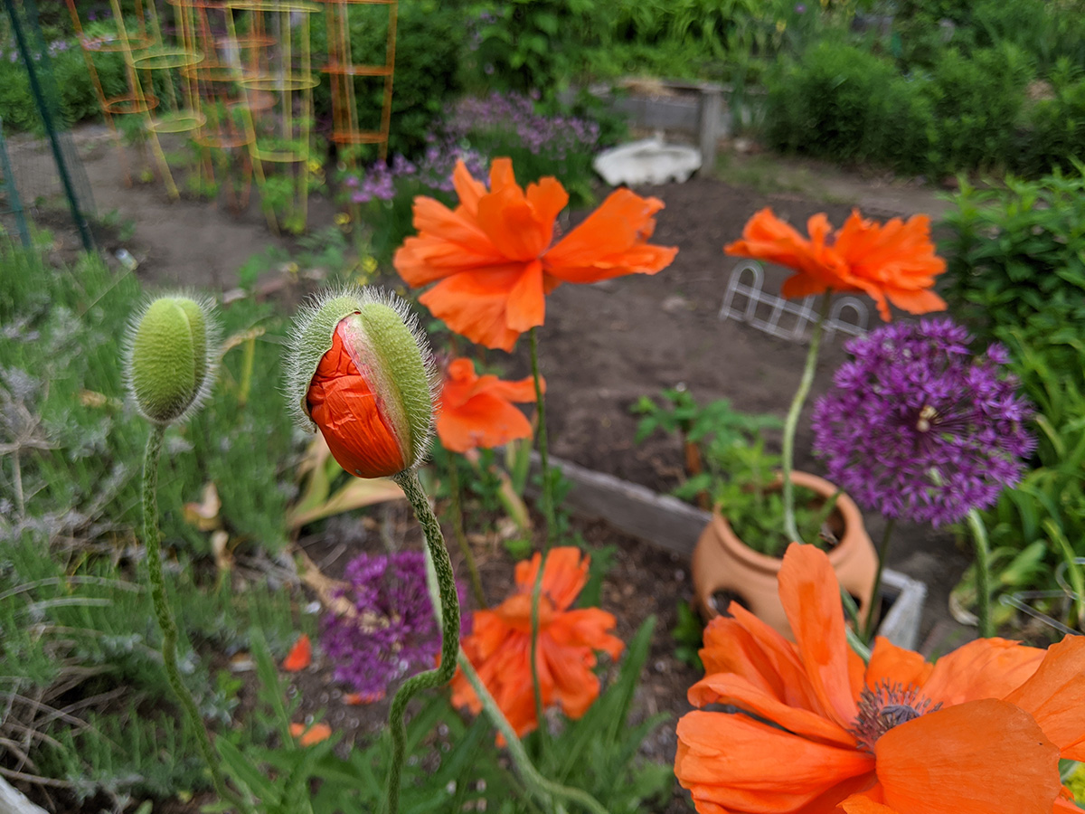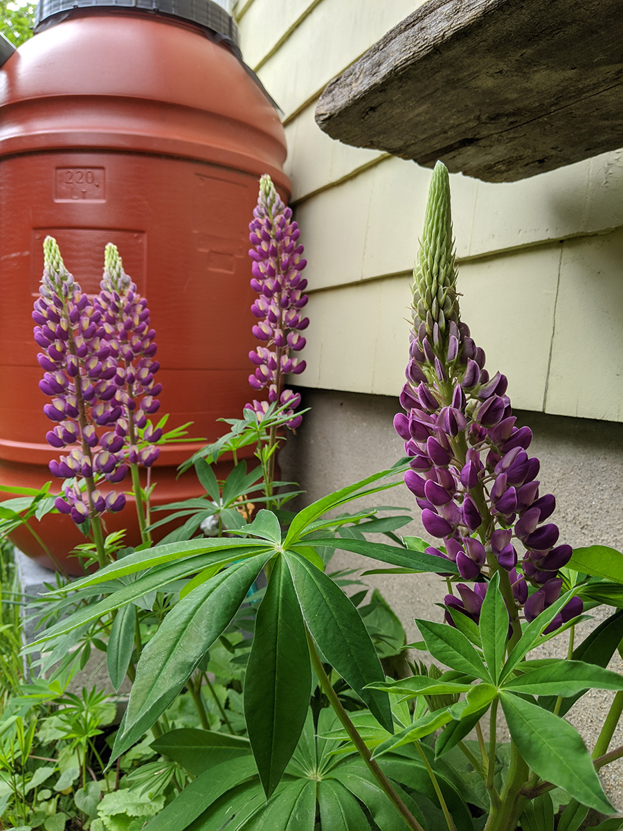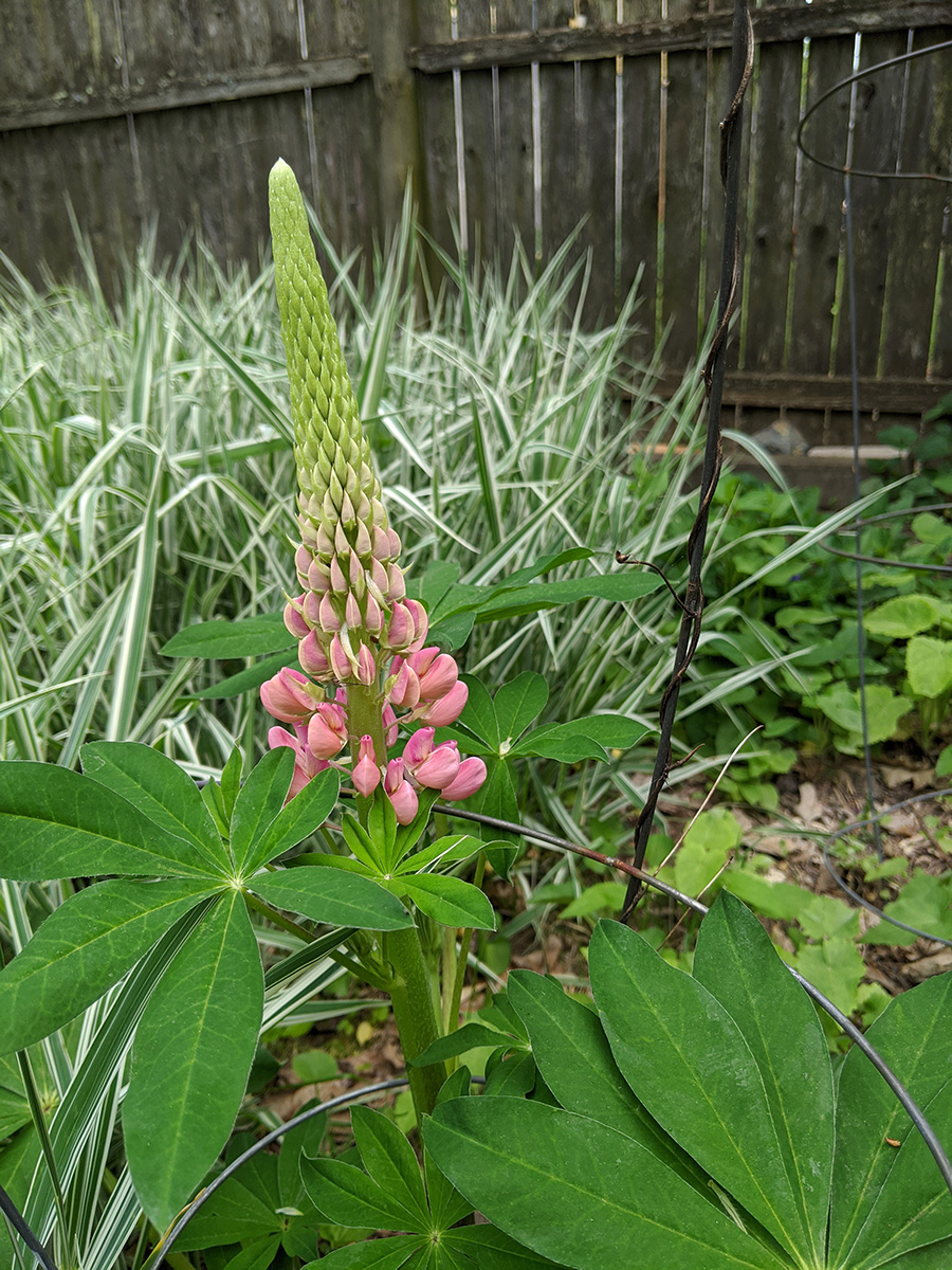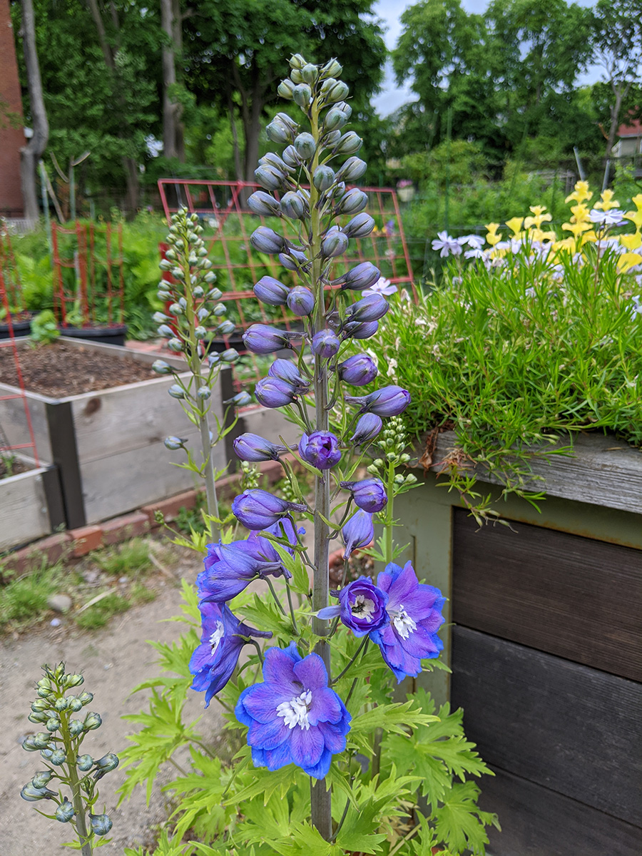 i watered my community garden plot and backyard this morning. the weather was overcast but warm, with a soupy humidity. for some reason there was zero pressure in the hose. i checked the faucet just to make sure and there seems to be something wrong with the plumbing. i trickled water my plot the best i could. it was so humid, the plants weren't in any danger of drying out anyway. i went around the rest of the community garden taking photos of the irises and columbines before finally walking home, where i then watered my yard, front and back.
