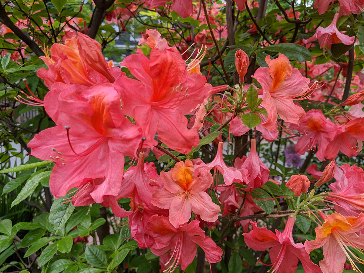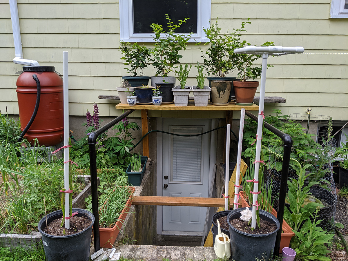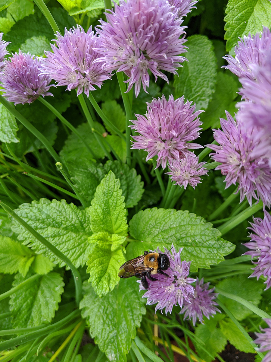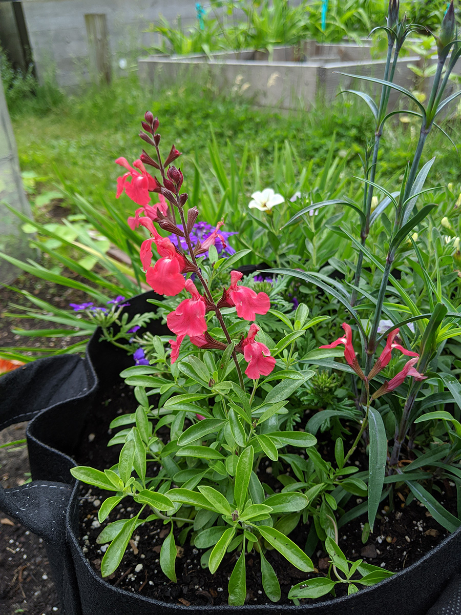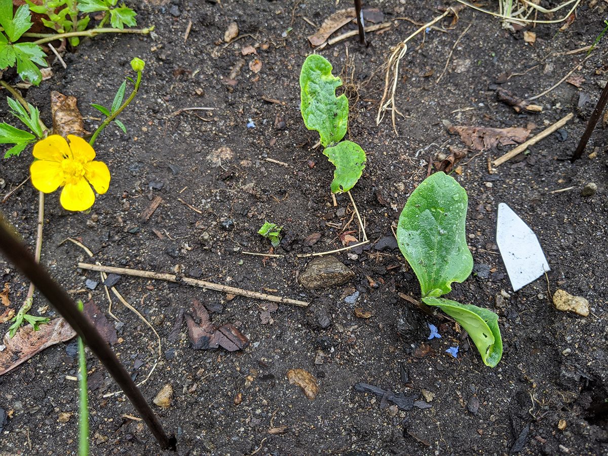 i watered my community garden plot and backyard this morning. the weather was overcast but warm, with a soupy humidity. for some reason there was zero pressure in the hose. i checked the faucet just to make sure and there seems to be something wrong with the plumbing. i trickled water my plot the best i could. it was so humid, the plants weren't in any danger of drying out anyway. i went around the rest of the community garden taking photos of the irises and columbines before finally walking home, where i then watered my yard, front and back.