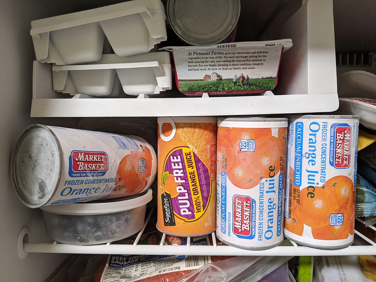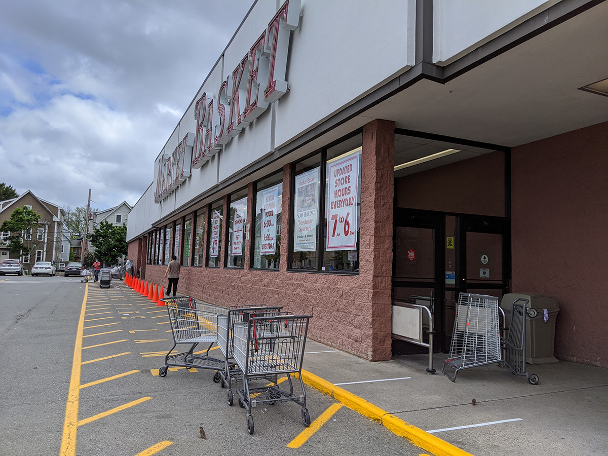 in the early afternoon i went to market basket. i was prepared to wait 30-40 minutes in line, so i was surprised to find no line at all. they even did away with the shopping cart barrier, so maybe this is a permanent thing. there was a good number of customers but still light compared to the typical market basket crowd. signs of things getting back to normal: they had yeast, but not the usual fleischmann brand. i checked the prices on chicken wings after i heard a while back the prices were dropping since so many restaurants were closed; it was $3.29/lbs. still a little expensive. i also stocked up some frozen orange juices. i used my grocery bags to carry my things, buying mostly supplies for my parents, only getting some mozzarella cheese for myself. my mother asked me to buy some pork hocks, i was going to get two packages but saw the sign limiting customers to only 2 meat items. since i was also getting some ground pork, i put back one of the hocks. when i went to go pay, i didn't know if the cashier was going to help me bag, so i asked her if i could do it. she said okay, but because i used my own bags, she wasn't allowed to help me.