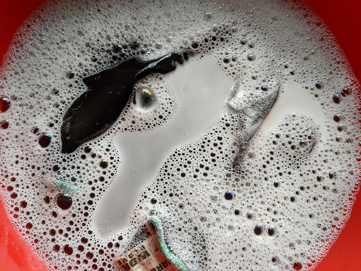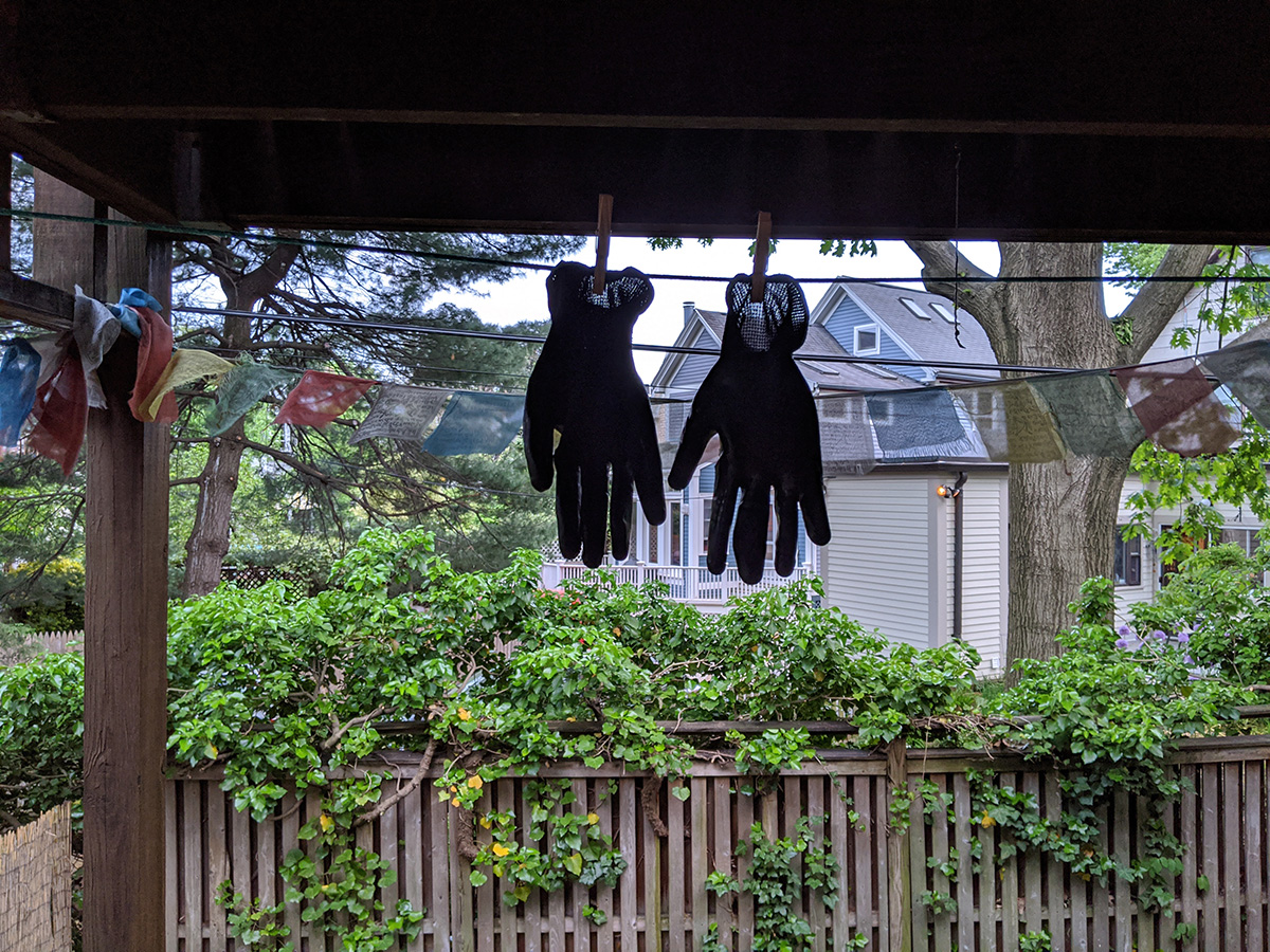 i've got a little bit of the dermatitis on my left hand but because i never scratch that, it's been manageable and hasn't been a problem, and has slowly disappeared without drama. the right hand though, that's a mess. the whole palm was encrusted in hard itchy blisters. one of the blisters was weeping today, kind of a strange experience milking fluids from your hand. once i got back home, i soaked my garden gloves in some oxiclean and later hung them out in the backyard to dry (not sure how well that'll do given the humidity).