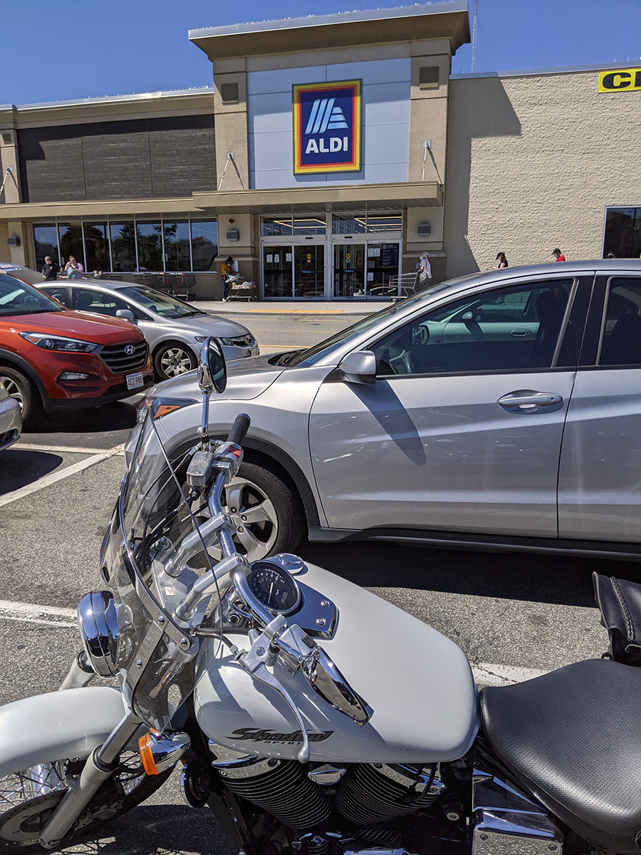 i went to the medford harbor freight to get a pair of garden gloves (we have a bunch in the house but they always get misplaced) and a folding pruning saw. after that i went to aldi's where there was a line about a dozen people long but it went fairly quick. the attendant outside was wiping down carts and handing them to customers still waiting in line. i was there primarily to pick up some hazelnut coffee for my mother but ended up getting $30 worth of groceries.