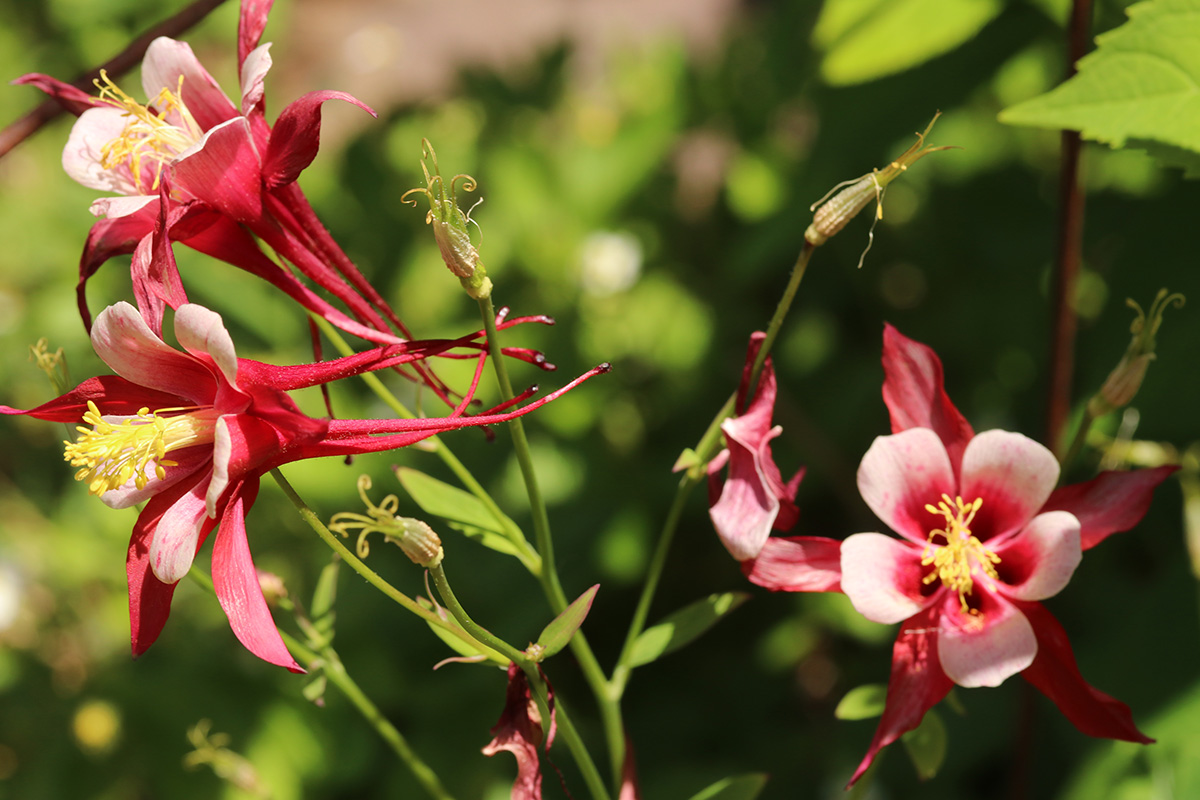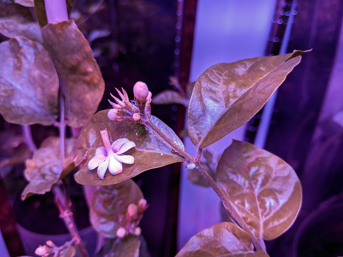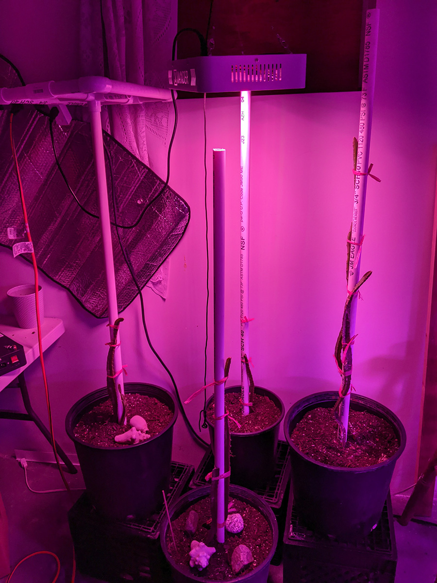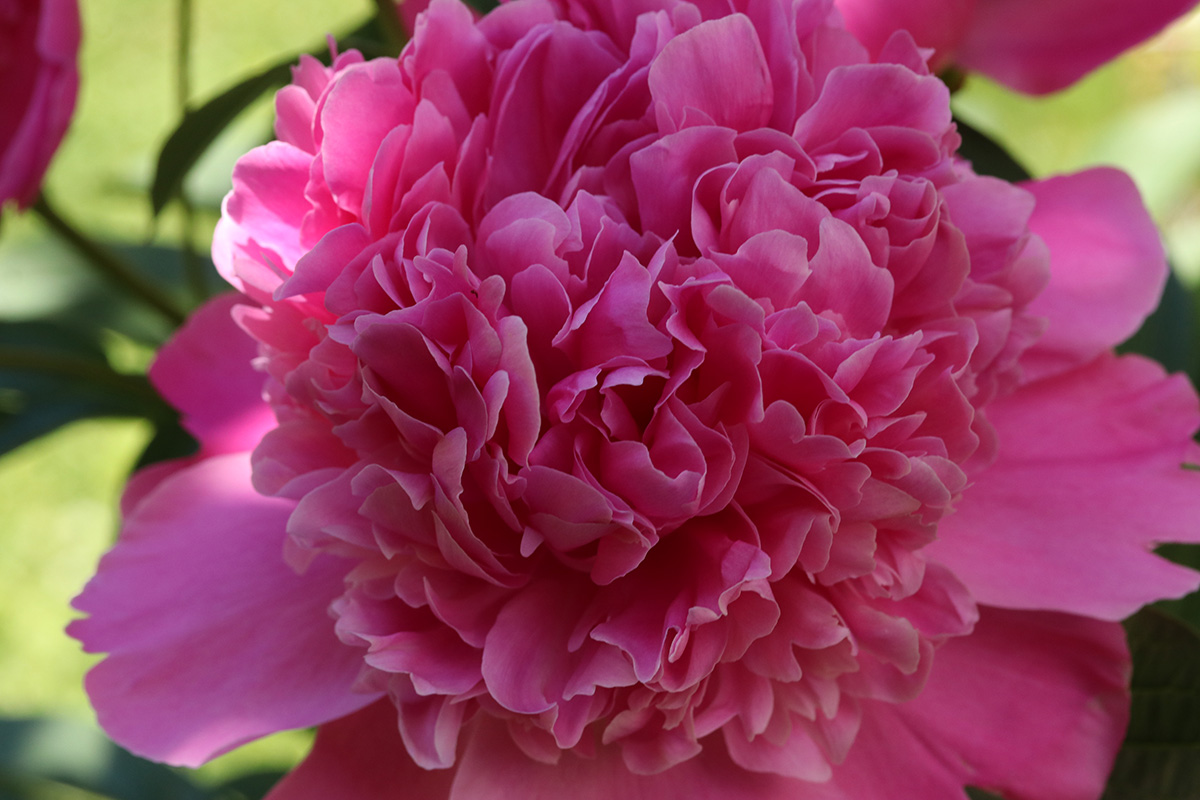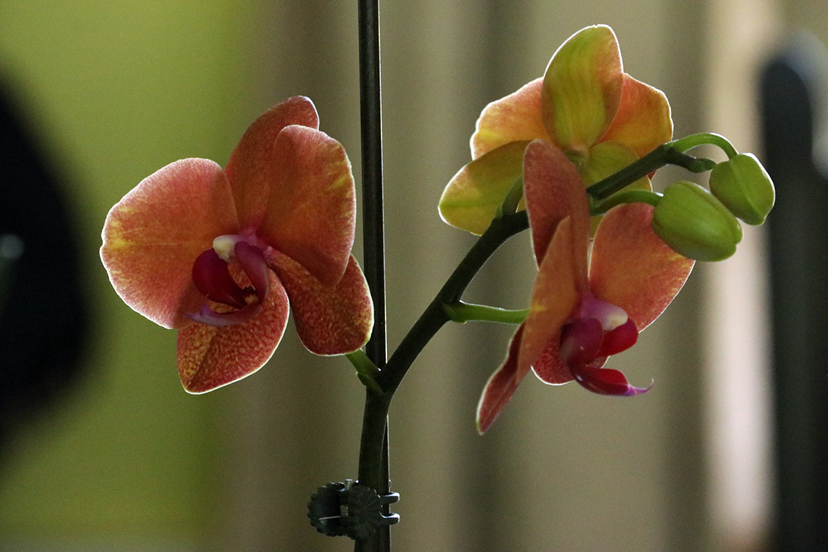 3 pink peony buds have bloomed in the southeastern corner perennial bed. there's a few more side buds, not sure if they'll be blooming as well. this is only the 2nd season this transplanted peony has been at this new location but it seems to be doing well in the full sun. the peony in the behind-the-garage perennial bed is a lot bigger and more established, with more flower buds. because it doesn't get as much sunlight, it doesn't bloom as quickly, but the blooms last longer. some spiderworts have also bloomed, showing off their triangular magenta-colored flowers that only last a day. our blue hydrangea is showing some promise by making flower buds on nearly every terminal branches. i thought they only made flower buds on the tips of last year's branches, maybe of which were damaged by the cold. turns out that's not true, new branches emerging from last year's old branches will all make flower buds. this will be the garden highlight for this year. inside, the peach orchid now has three flowers, when yesterday there was just two; the flower seemed to have magically appeared fully formed overnight.
