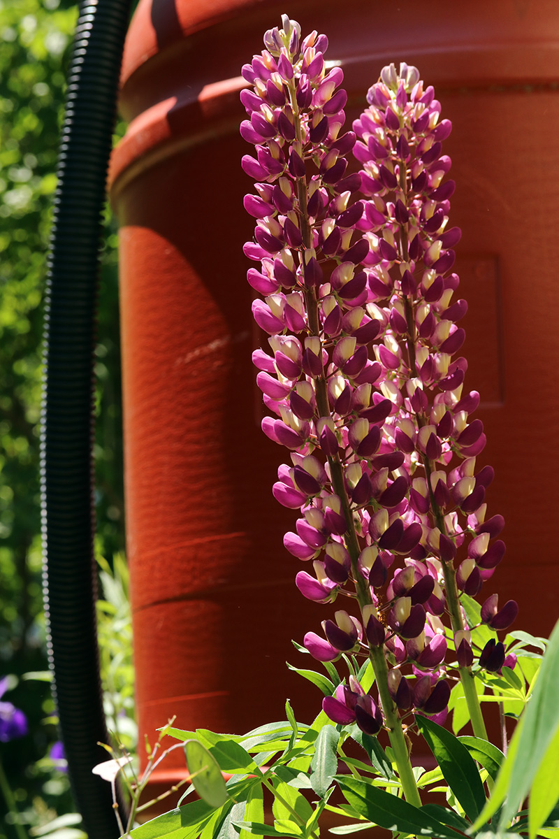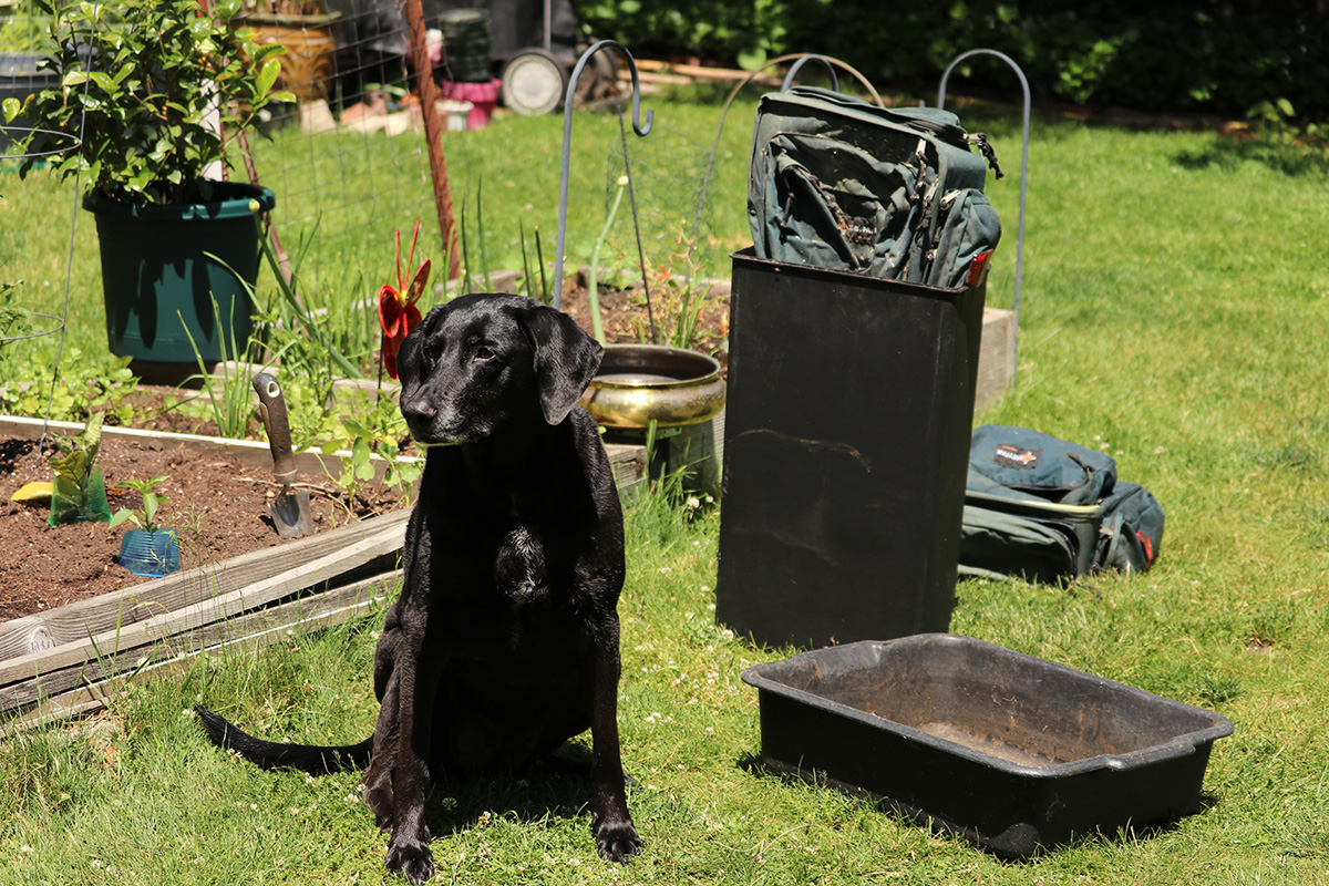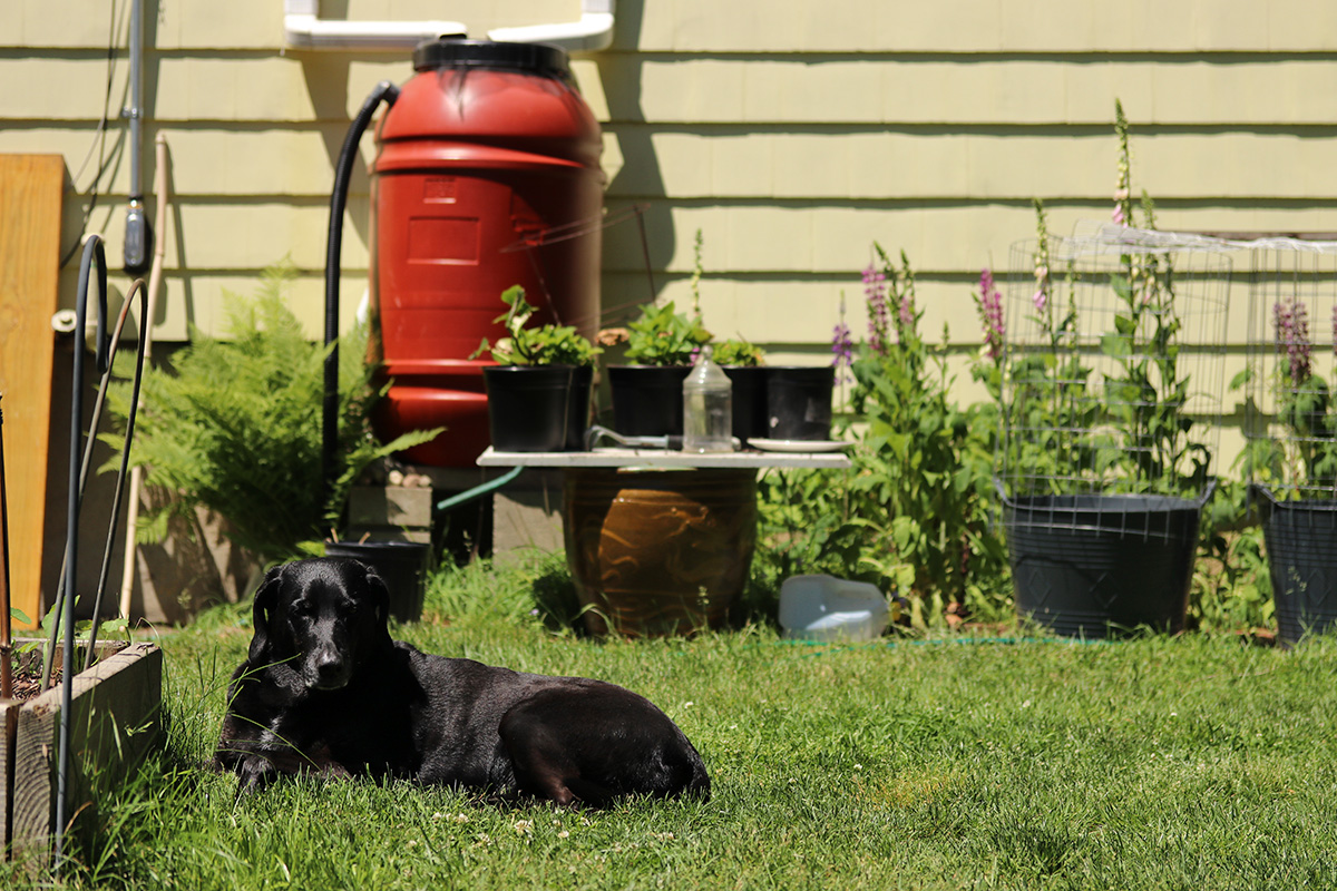 my father continued tidying up the garage. there wasn't too much garden work for me to do in the backyard. my sister came back with hailey again, i set up the sprinkler on low so her dog can play in the water for a few minutes. two bunnies continue to be spotted in the backyard, impossible to drive them out. i got some baby carrots from aldi's which i put in the live trap, hoping they would be better rabbit bait.