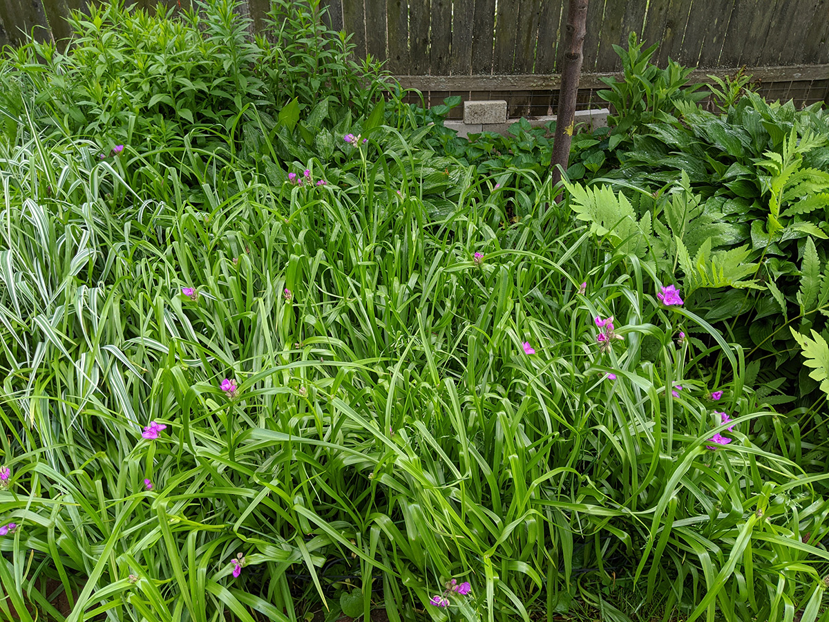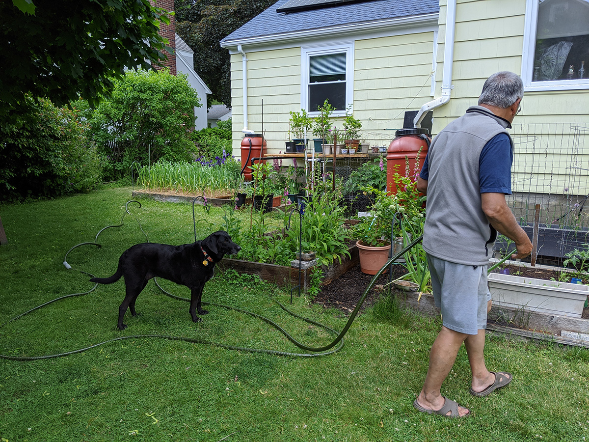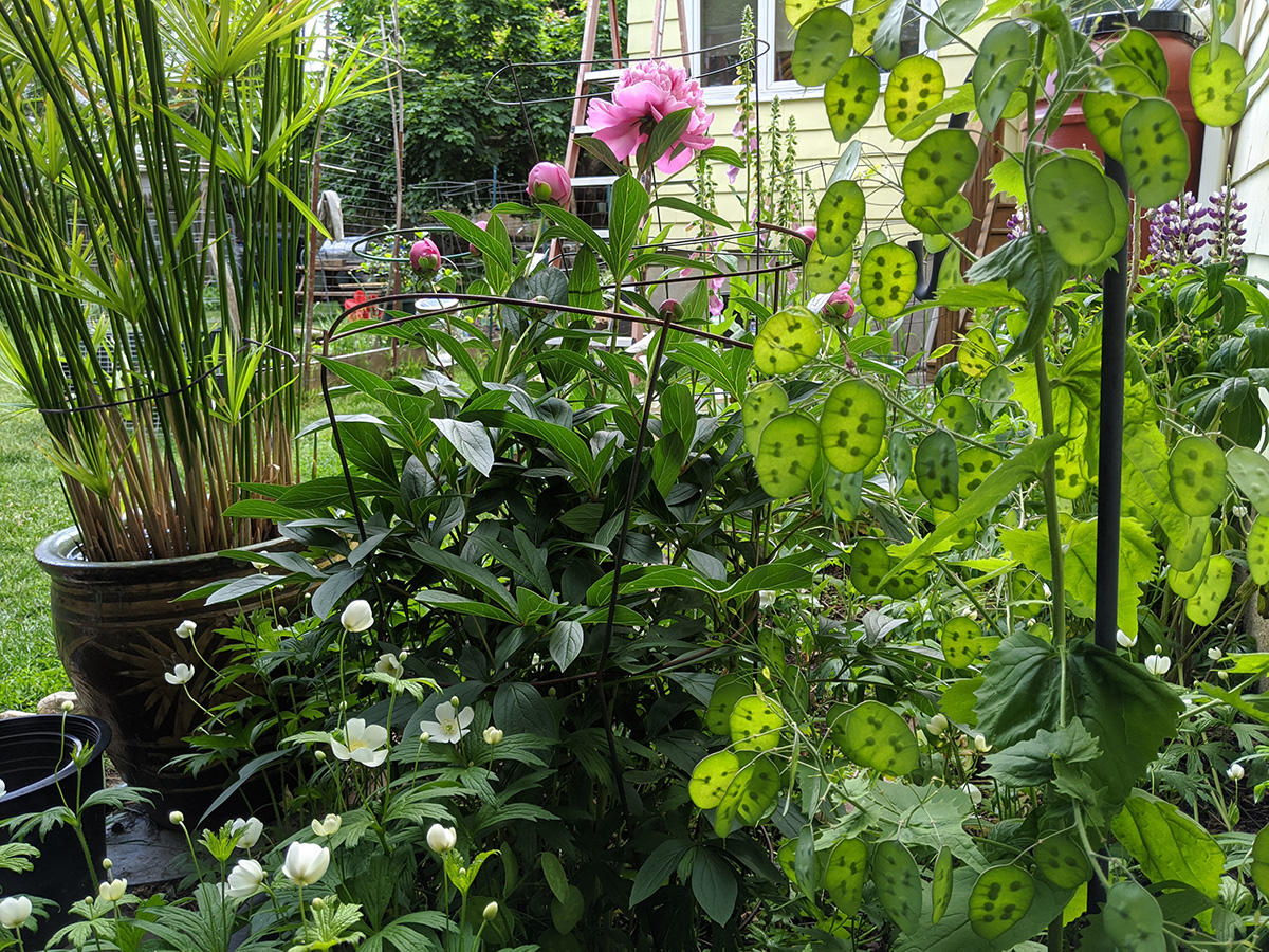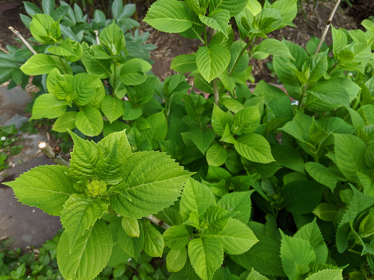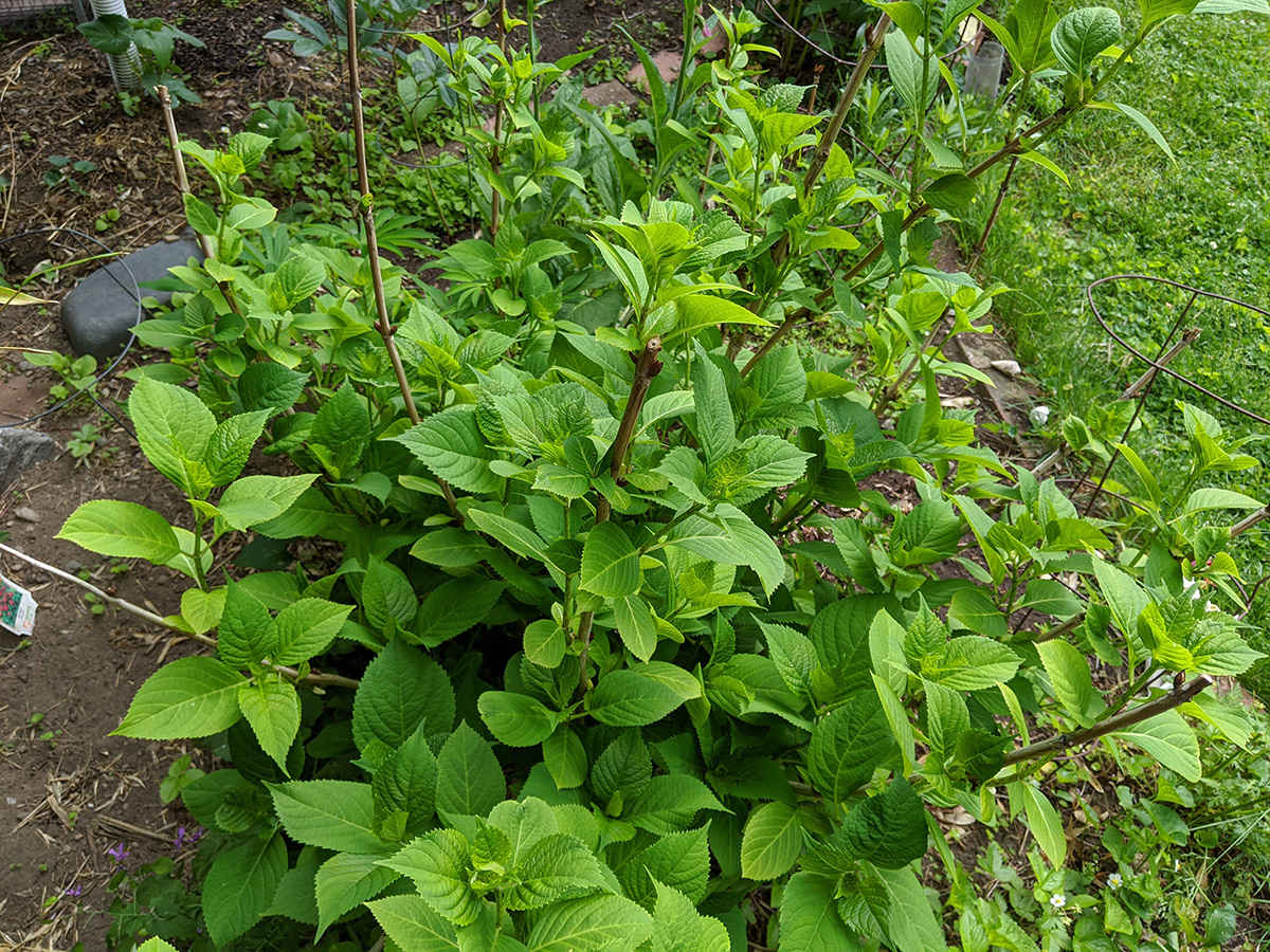 my father and i planted a few more things in the backyard: 2 squash seedlings matthew gave him on sunday when he dropped off the jiucaihexi in arlington; a tomato plant by the rosemaary underneath the grapevines; and two white hydrangeas, one next to the lilacs, another outside of the fence on the western side of the house, an empty spot where a rose bush used to be. we still have two more hydrangeas to plant, we figured the best place would be in the dahlia bed, now that it seems the dahlias from last season might not haven't survived.