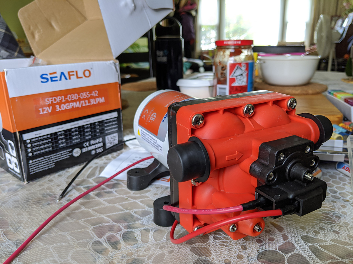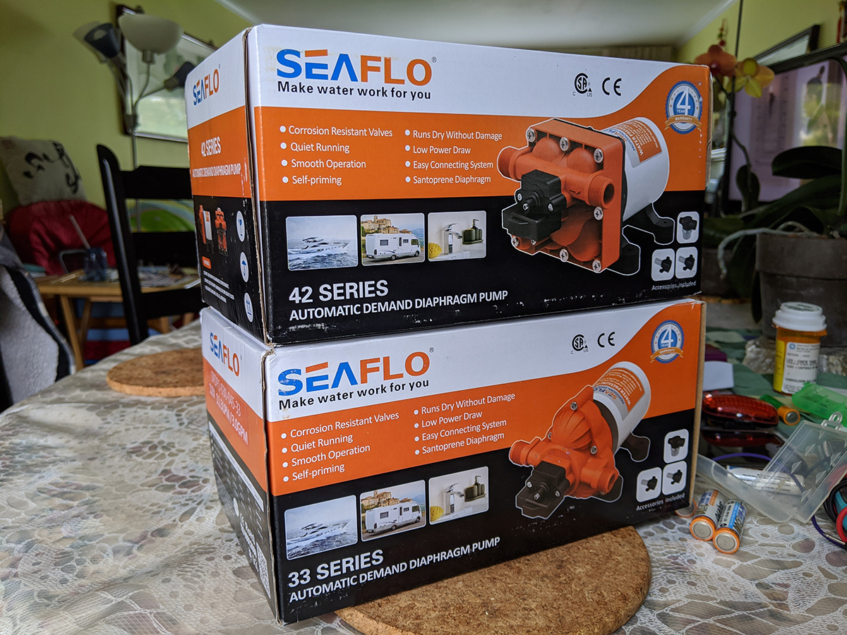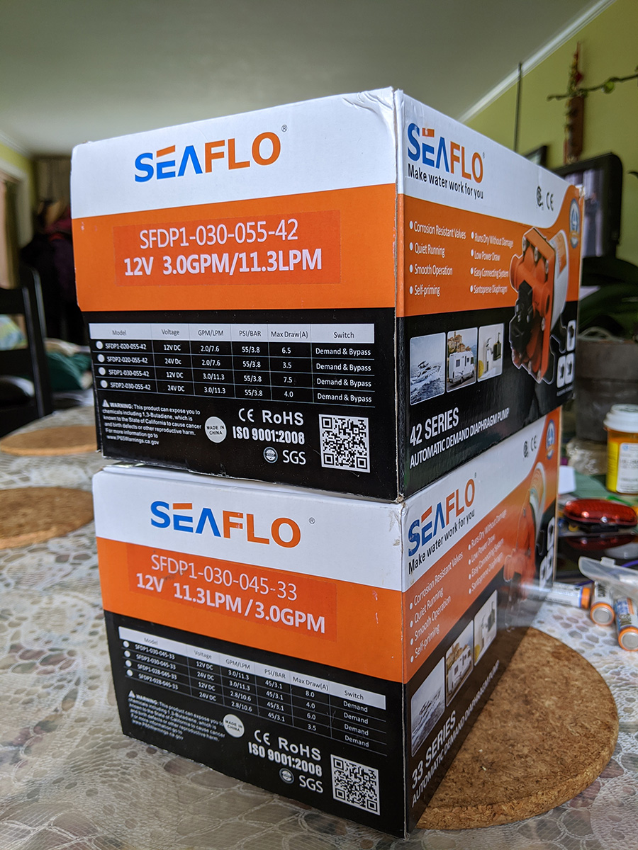 when my father called me in the late morning i already knew what it was about before picking up: the seaflo series-42 on-demand pump had finally arrived! i rode the motorcycle to belmont to check it out.