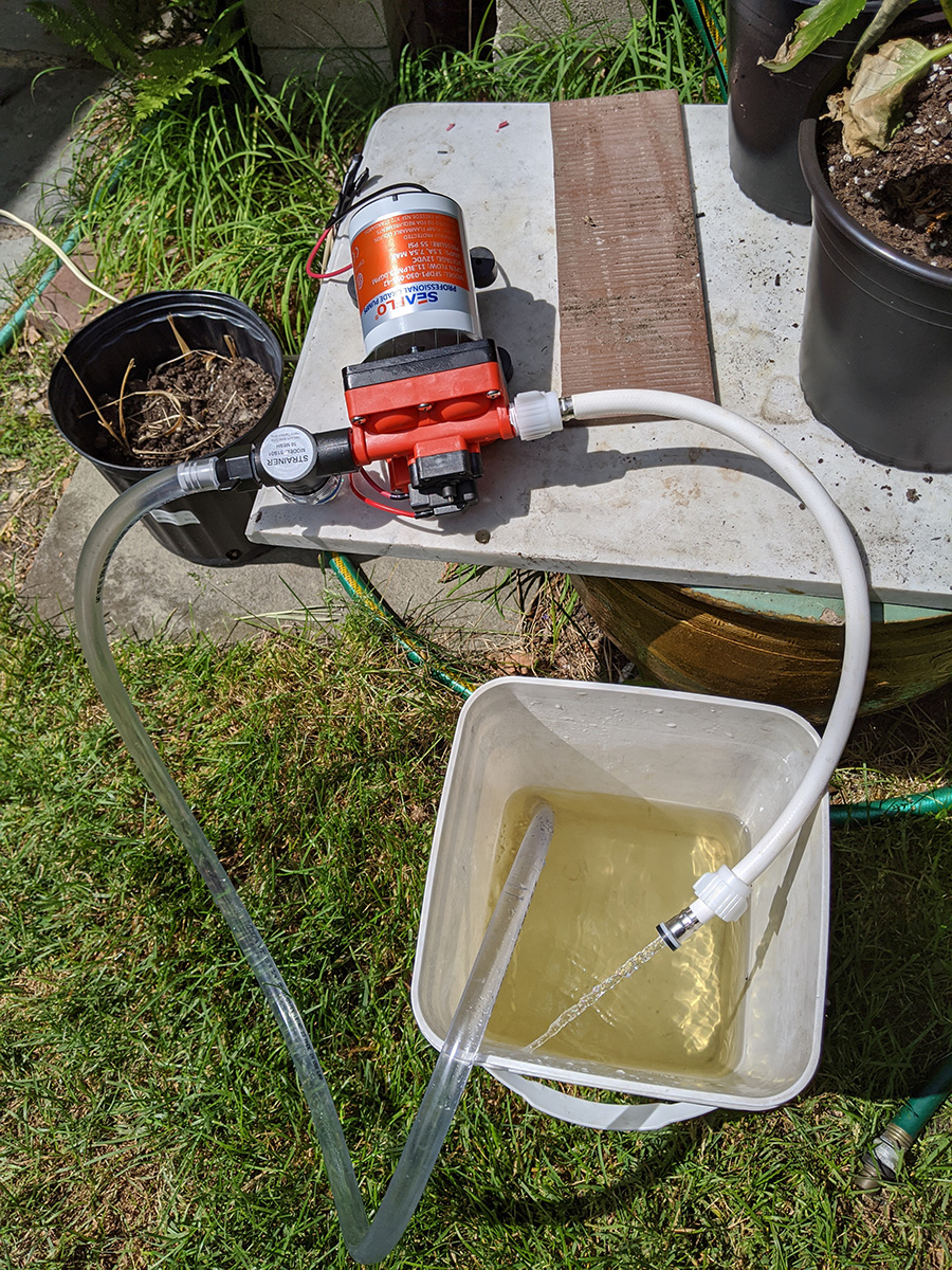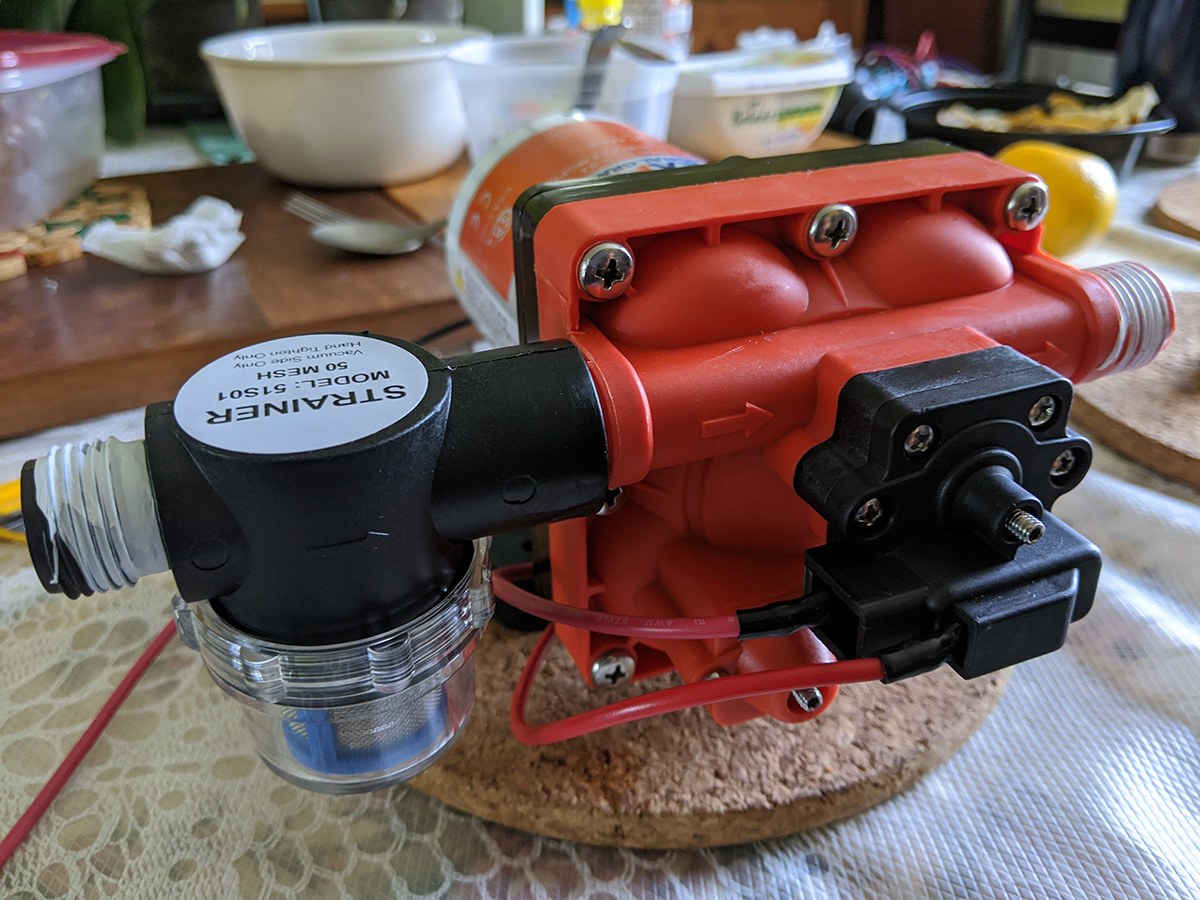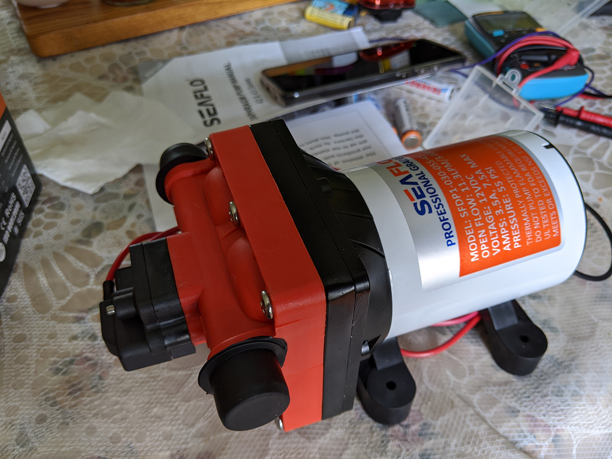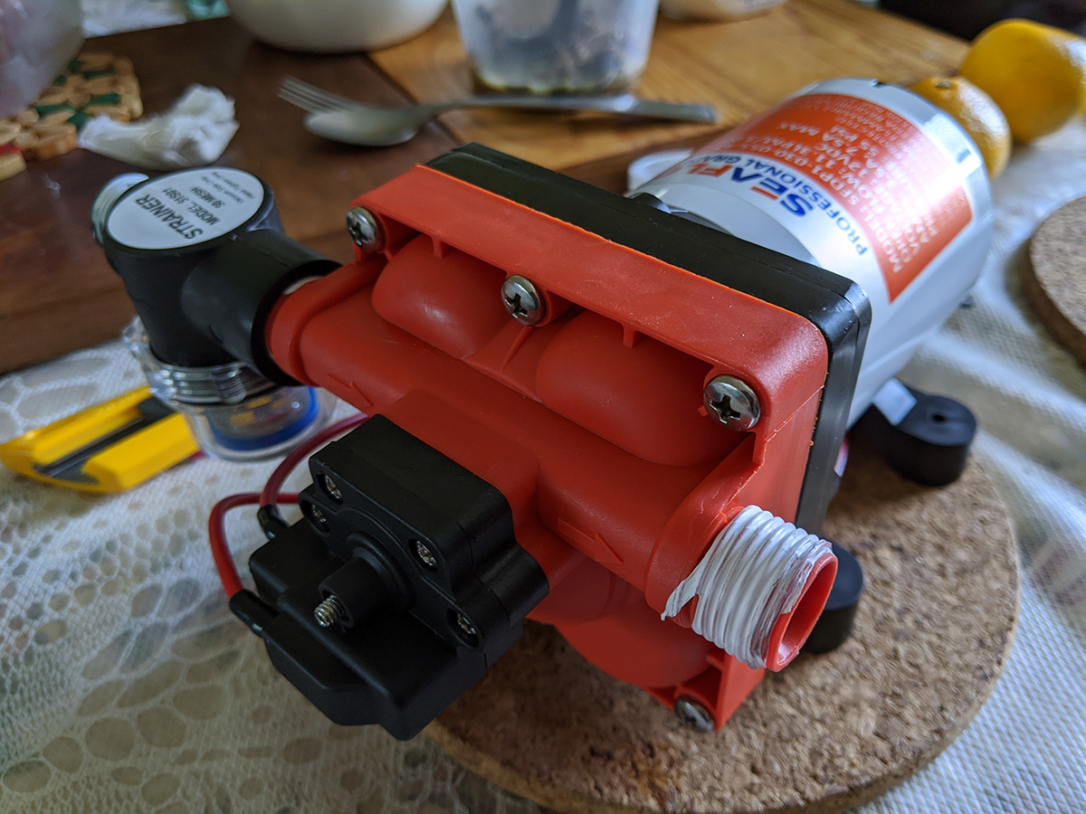 when my father called me in the late morning i already knew what it was about before picking up: the seaflo series-42 on-demand pump had finally arrived! i rode the motorcycle to belmont to check it out.