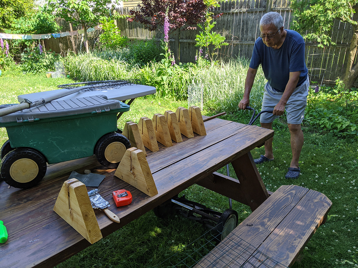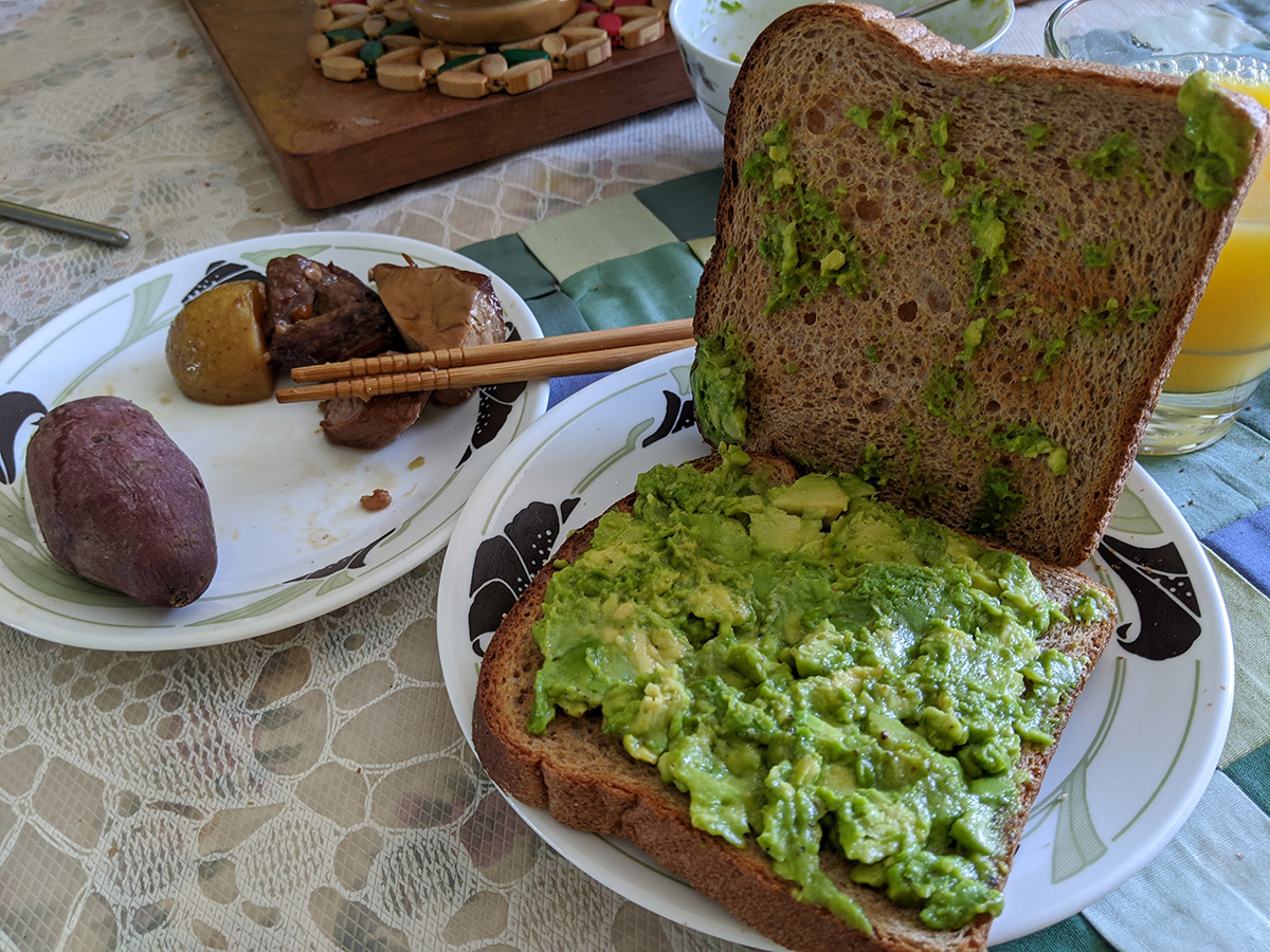 i went via motorcycle, as i'd be returning the car later today. my father was in the garage cutting wooden sneeze guard braces with the naked table saw. i checked the rain barrel water level gauge, i'd never seen it all the way to the top before, all our barrels at full capacity (8 barrels x 55 gallons each = 440 gallons of rain water). my mother made me some lunch - avocado toast - and i left after finishing eating. there was no parking outside my house so i parked across the street, miraculously managing to parallel park into a tight spot without once bumping into the car in front or behind me.